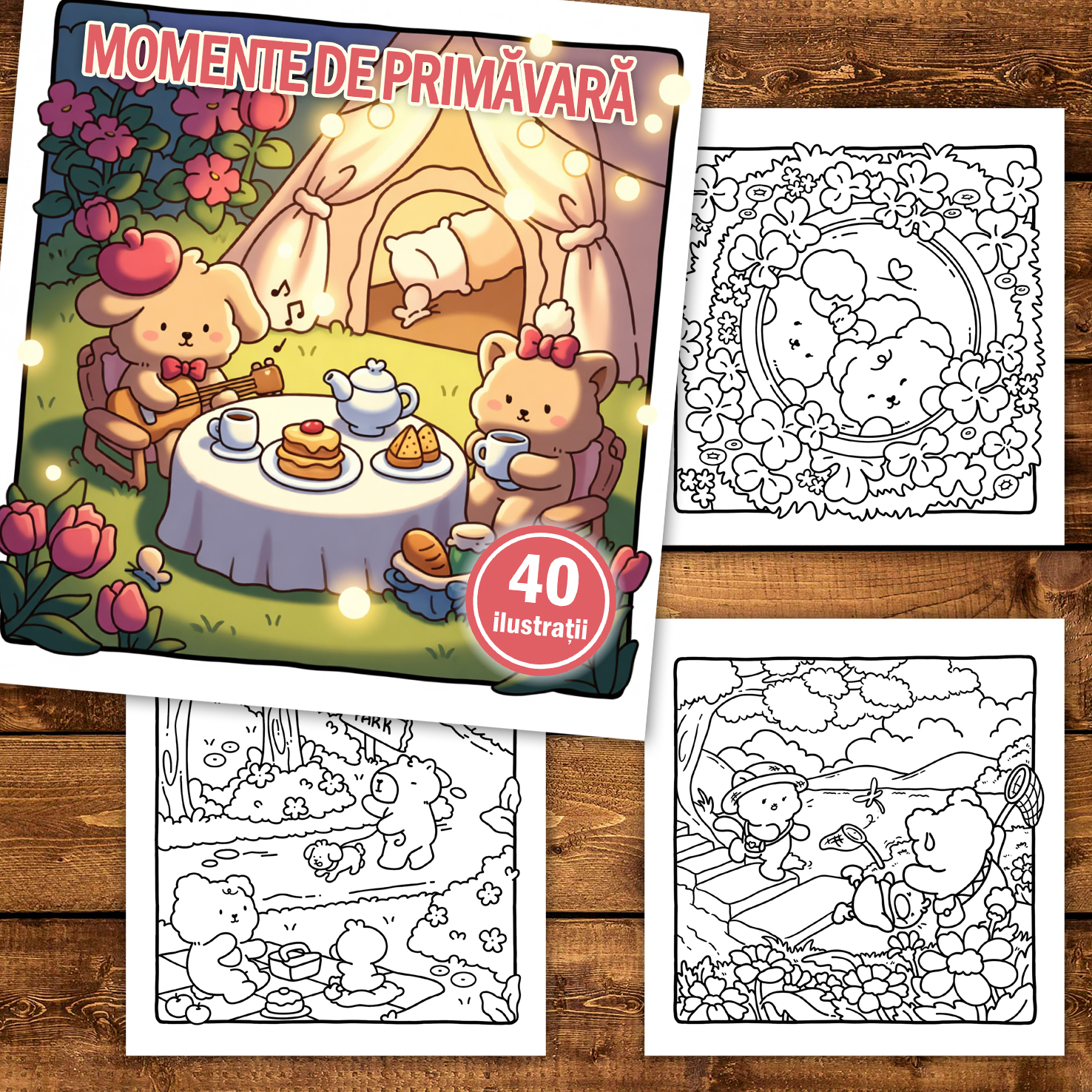 Carte de colorat, 40 de ilustratii Momente de Primavara, 86 pagini