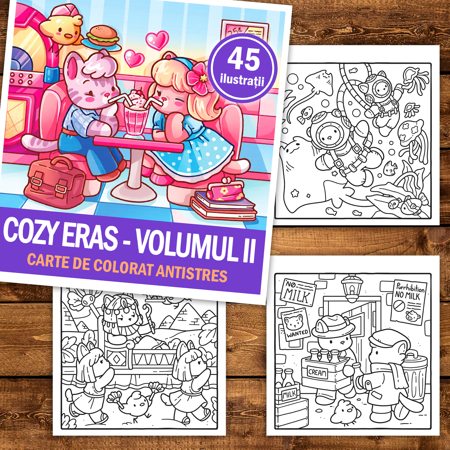 Carte de colorat, 45 de ilustratii Cozy Eras - Volumul II, 96 pagini