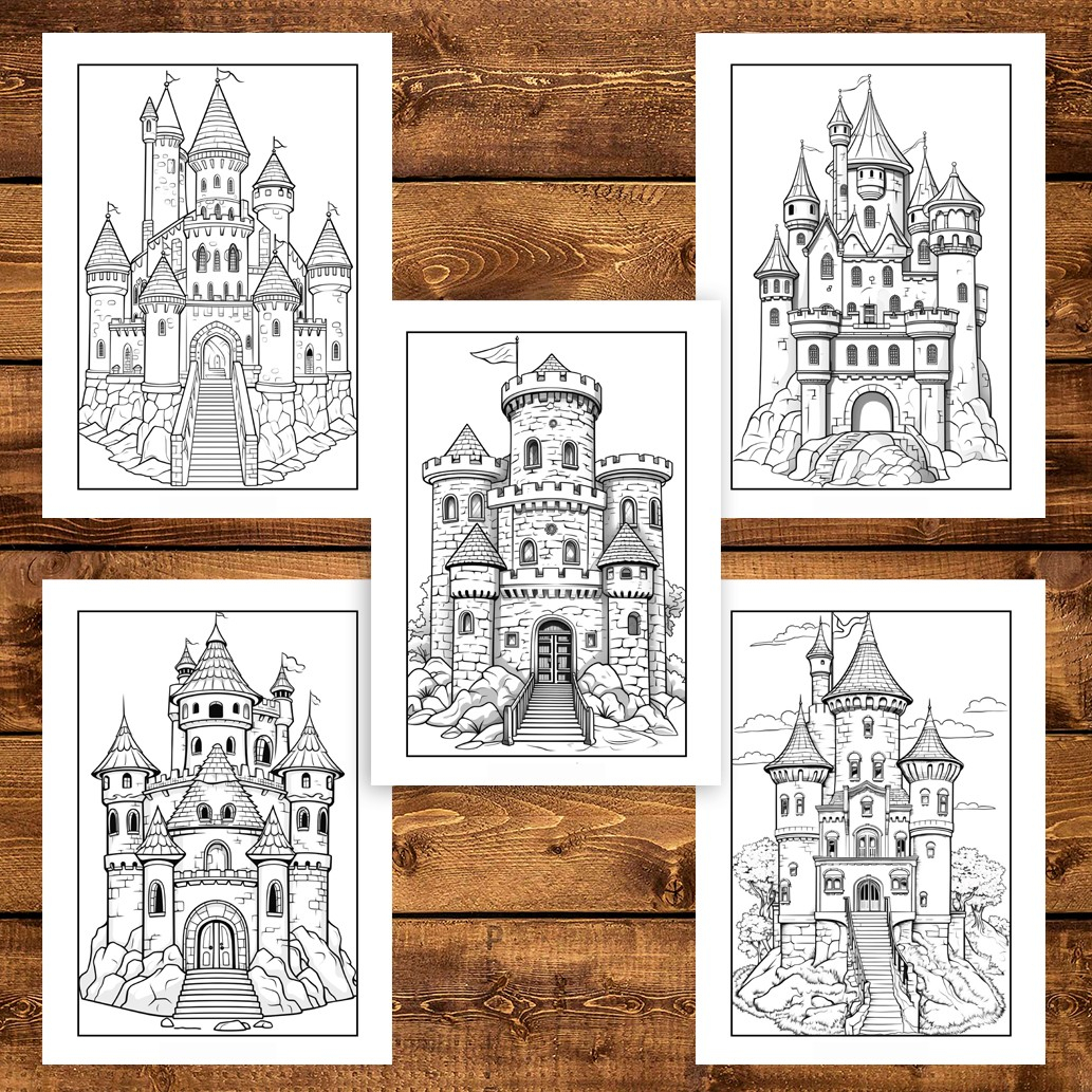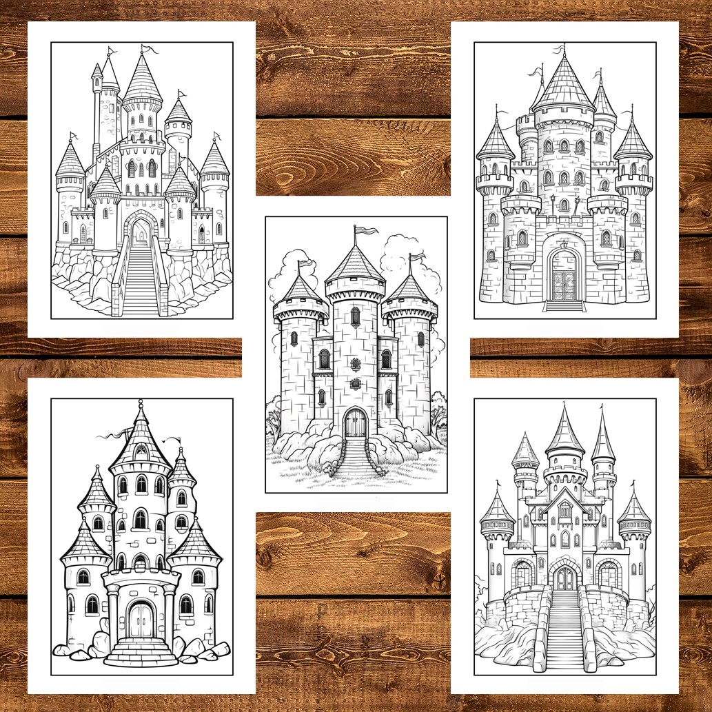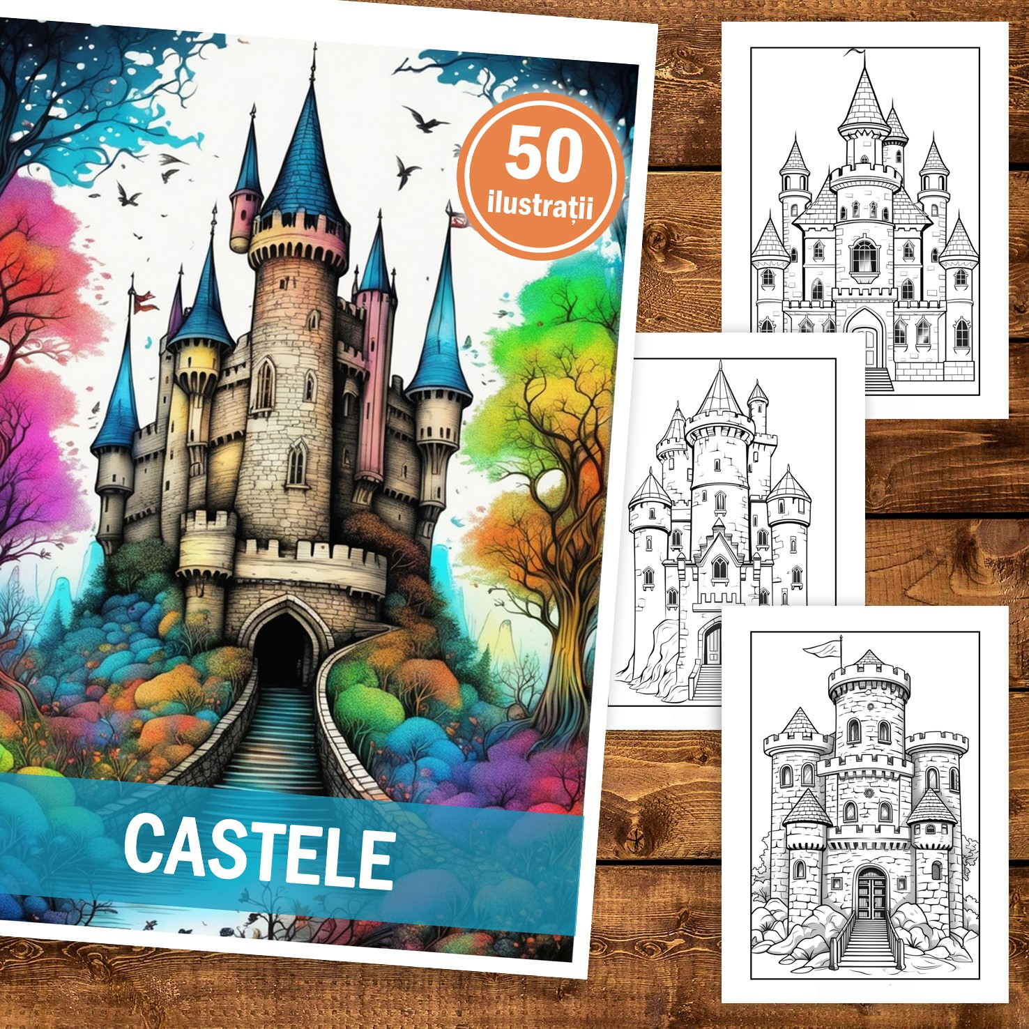Carte de colorat, 50 de ilustratii, Castele, 106 pagini