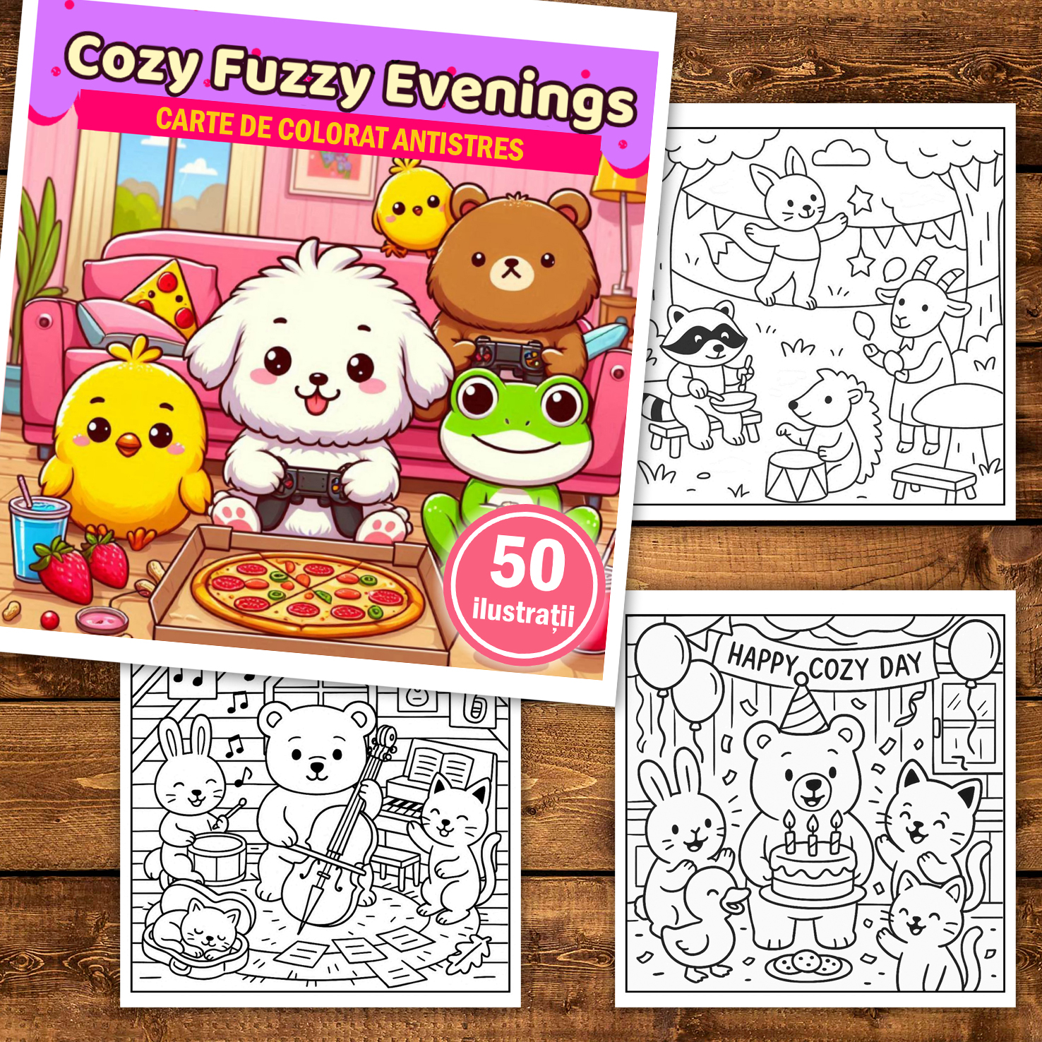 Carte de colorat, 50 de ilustratii Cozy Fuzzy Evenings, 106 pagini