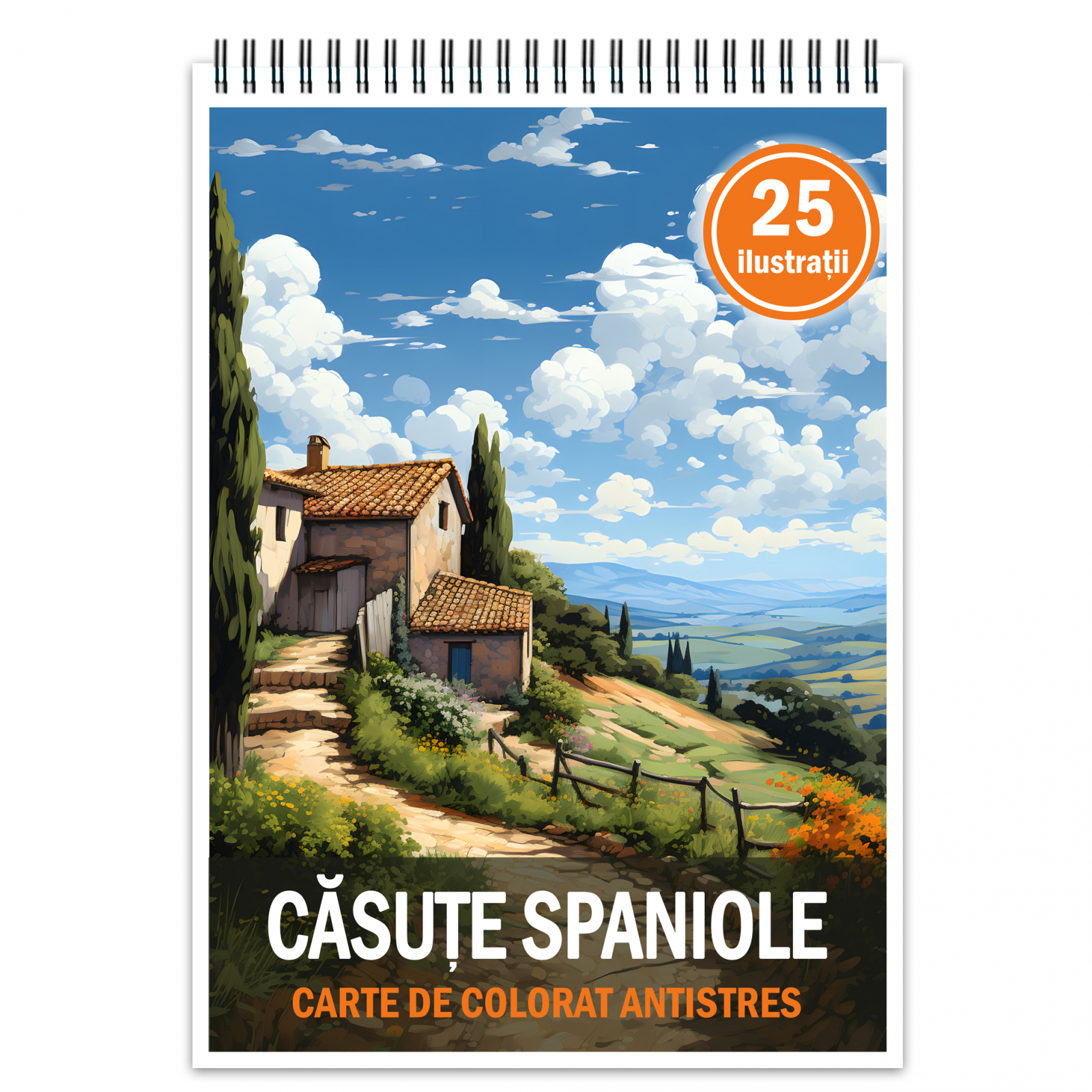 Carte de colorat antistres , 25 de ilustratii Casute Spaniole, 56 pagini