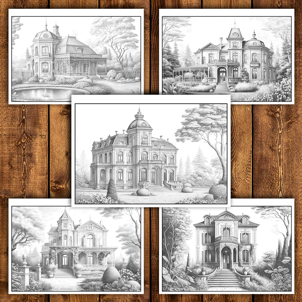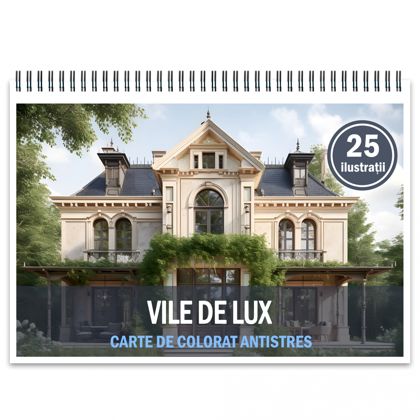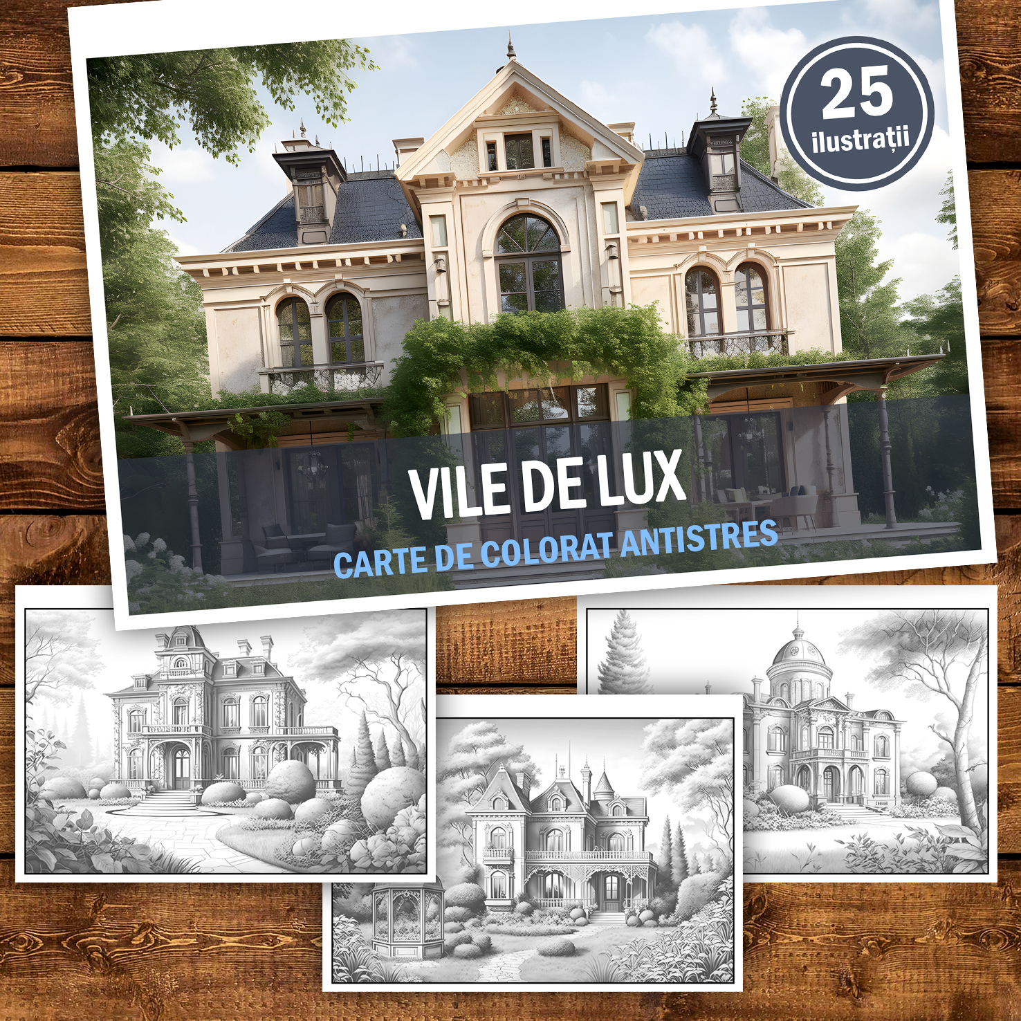 Carte de colorat antistres , 25 de ilustratii Vile de lux, 56 pagini