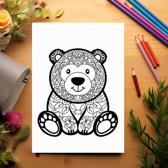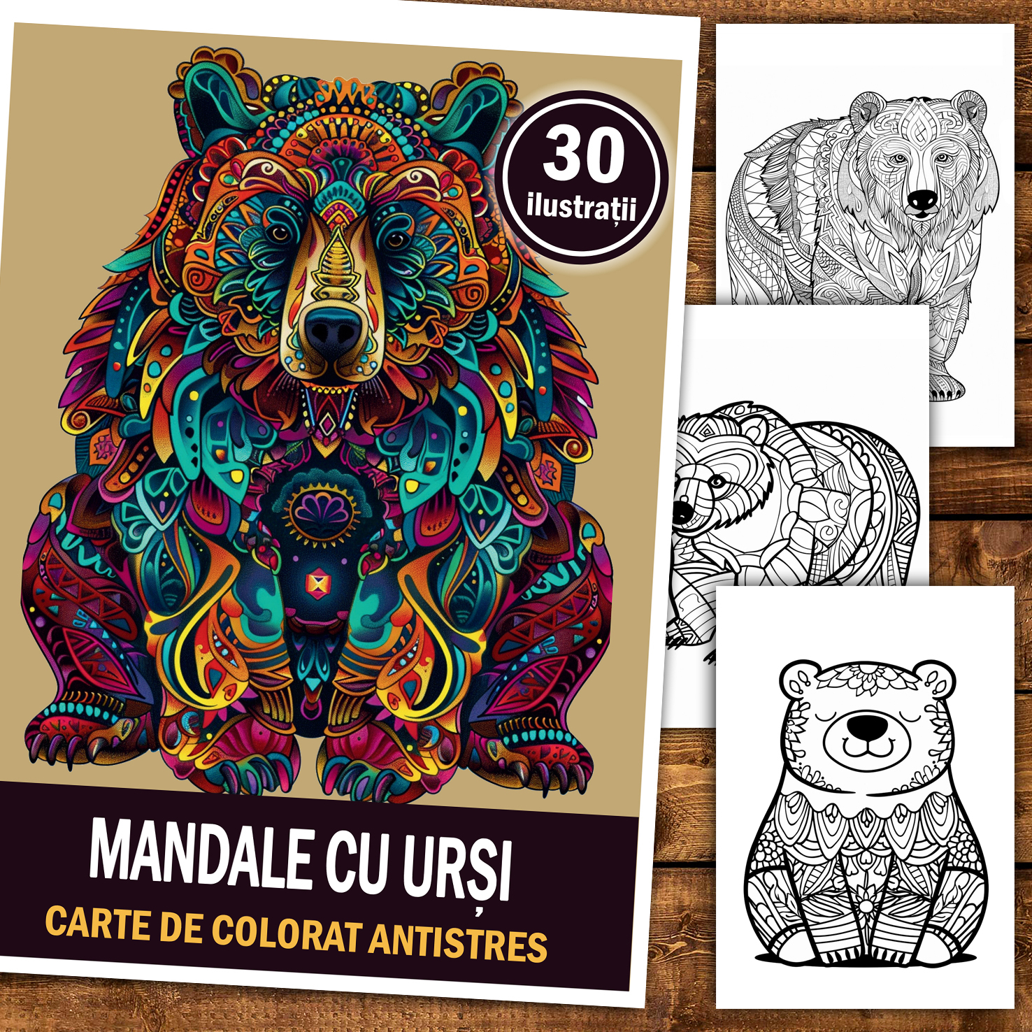 Carte de colorat antistres , 30 de ilustratii Mandale cu Ursi, 66 pagini