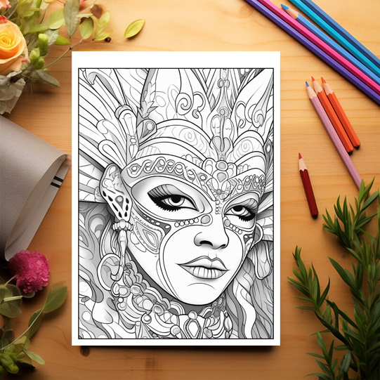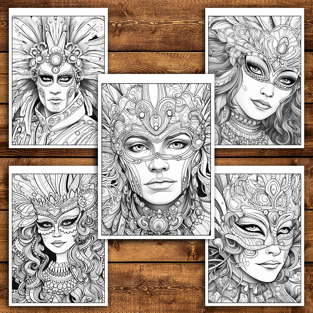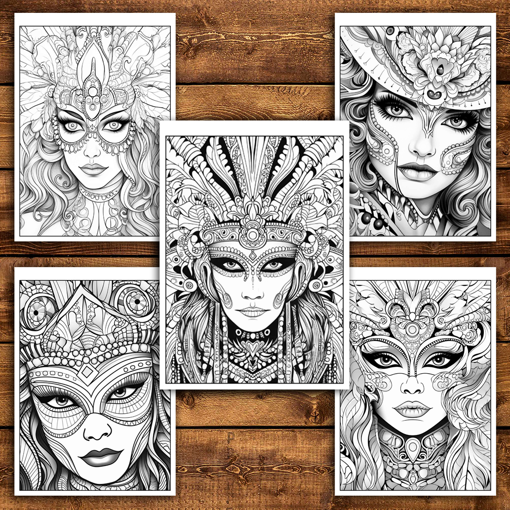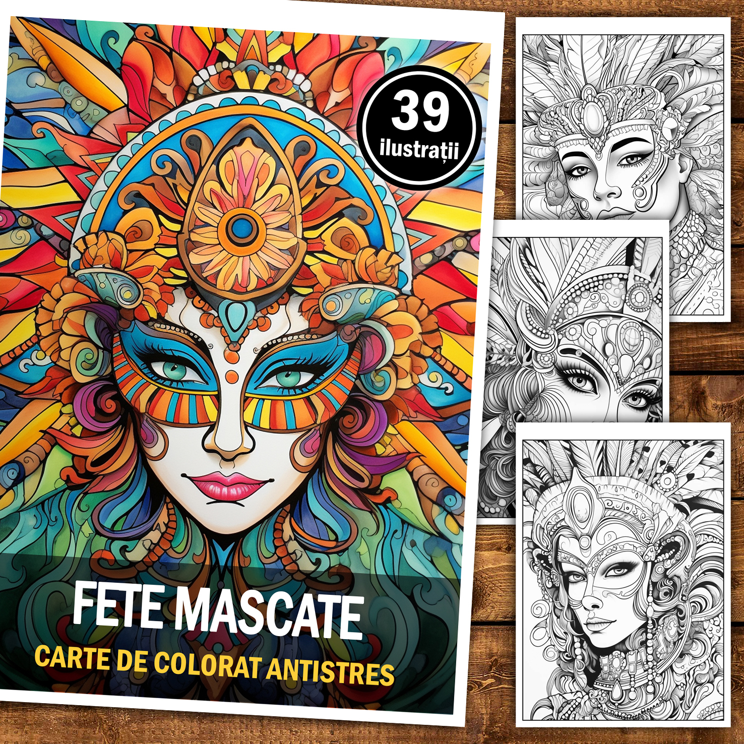 Carte de colorat antistres , 39 de ilustratii Fete Mascate, 84 pagini