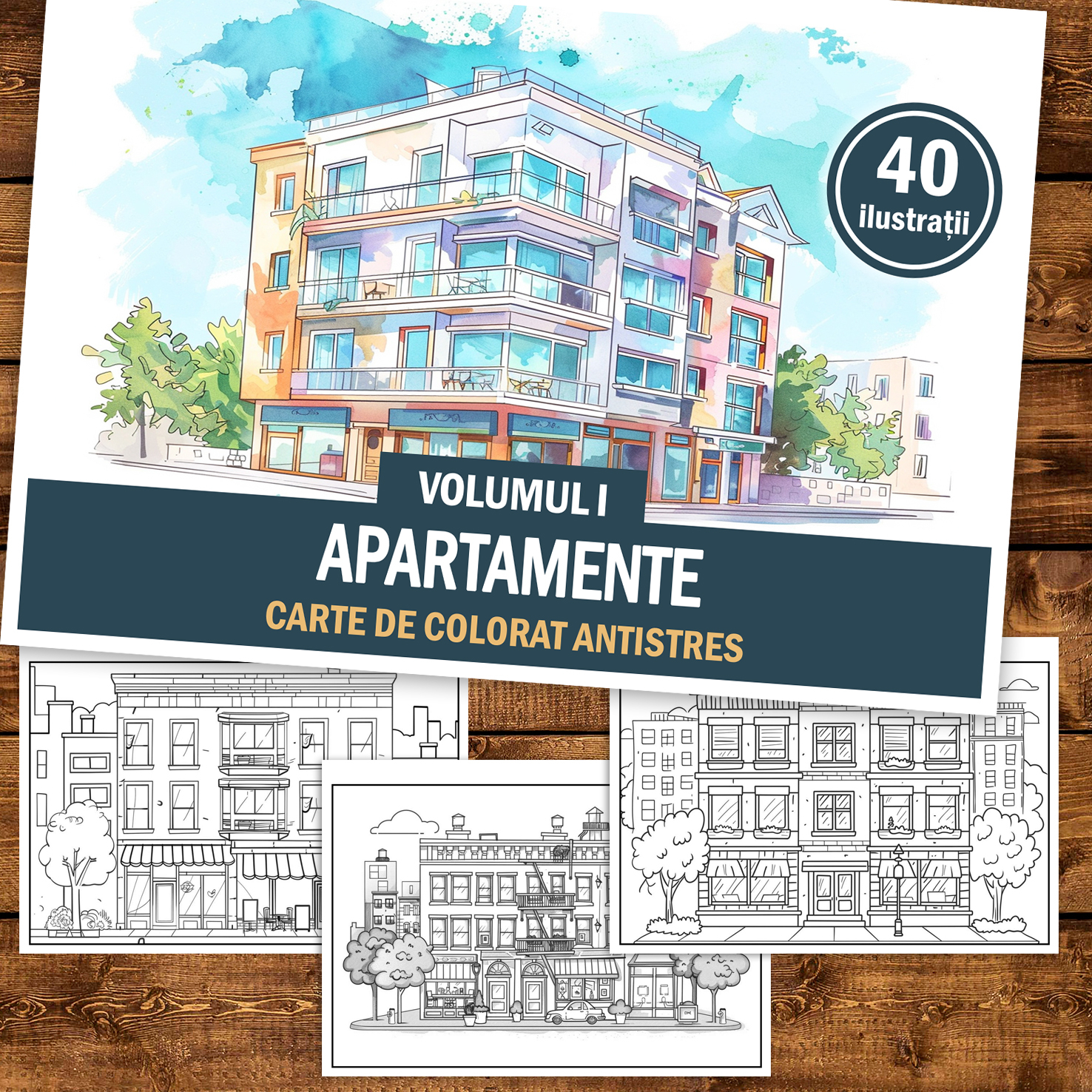 Carte de colorat antistres , 40 de ilustratii Apartamente - Volumul I, 86 pagini