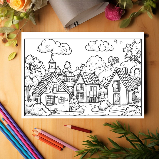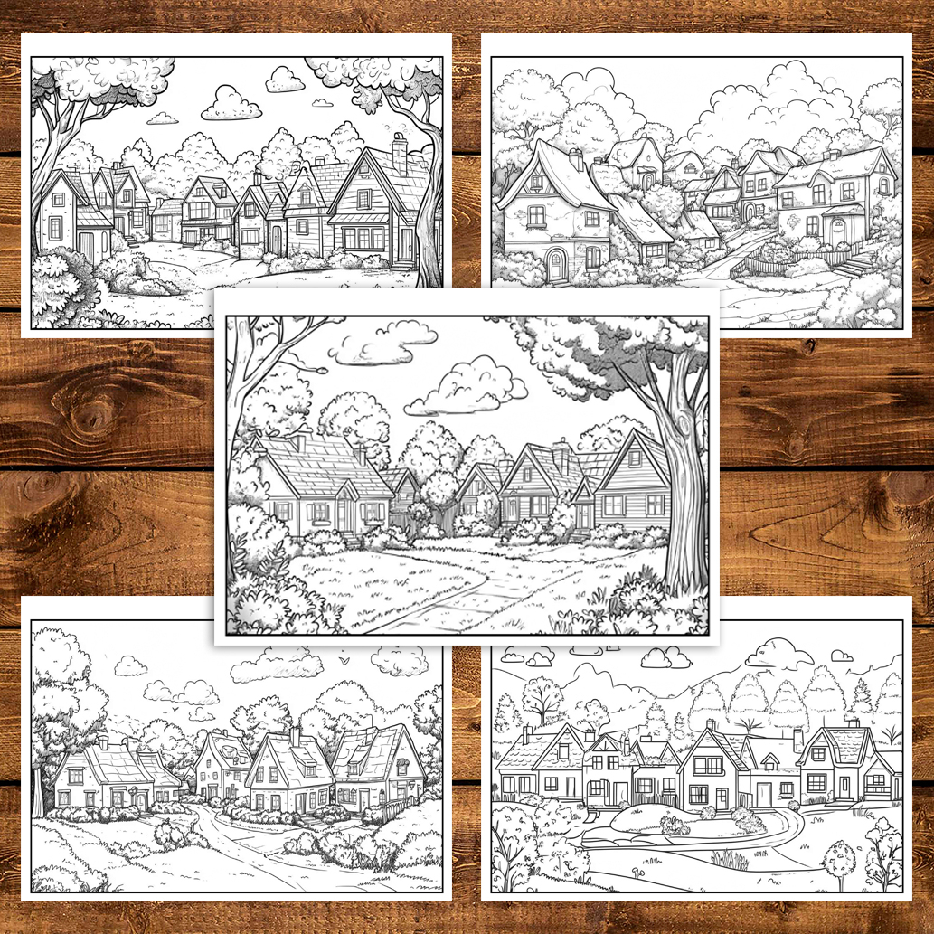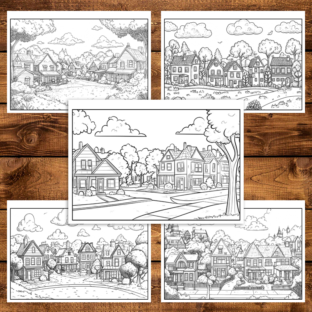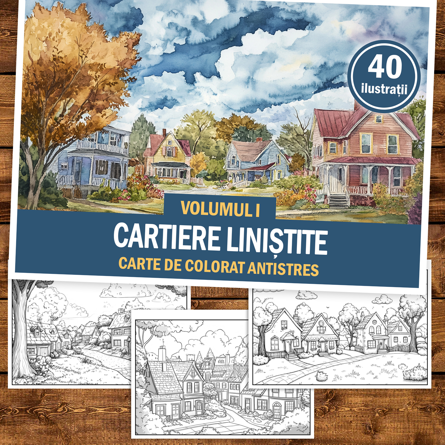 Carte de colorat antistres , 40 de ilustratii Cartiere linistite - Volumul I, 86 pagini