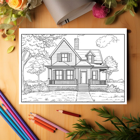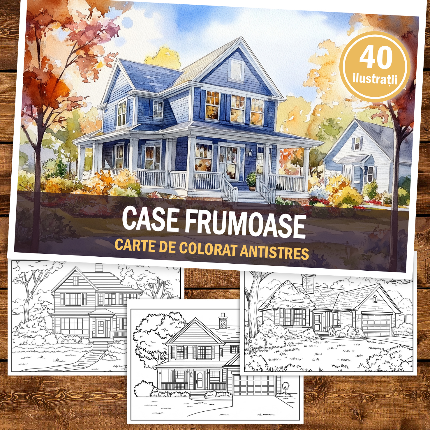 Carte de colorat antistres , 40 de ilustratii Case Frumoase, 86 pagini