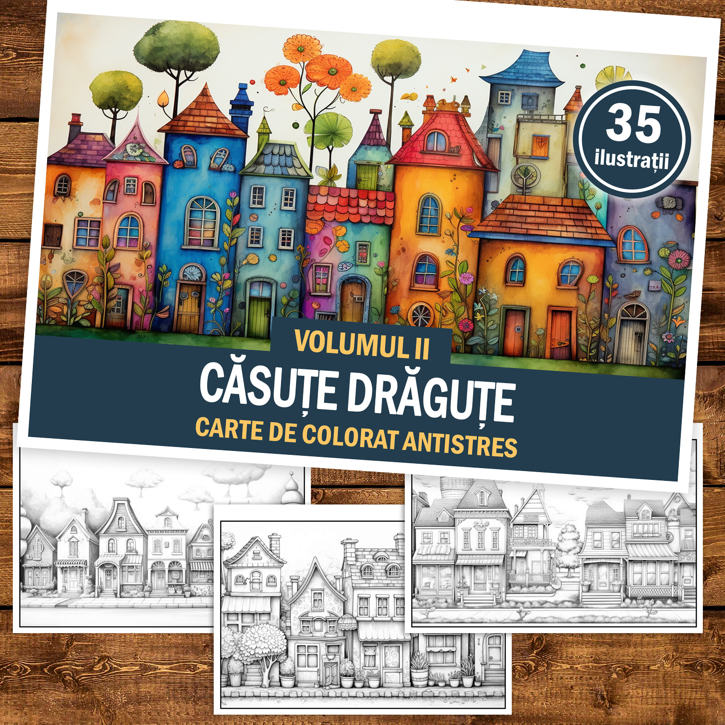 Carte de colorat antistres , 40 de ilustratii Casute Dragute - Volumul II, 86 pagini