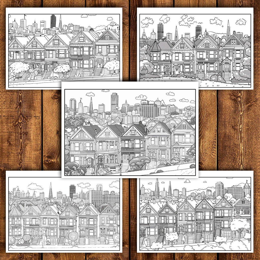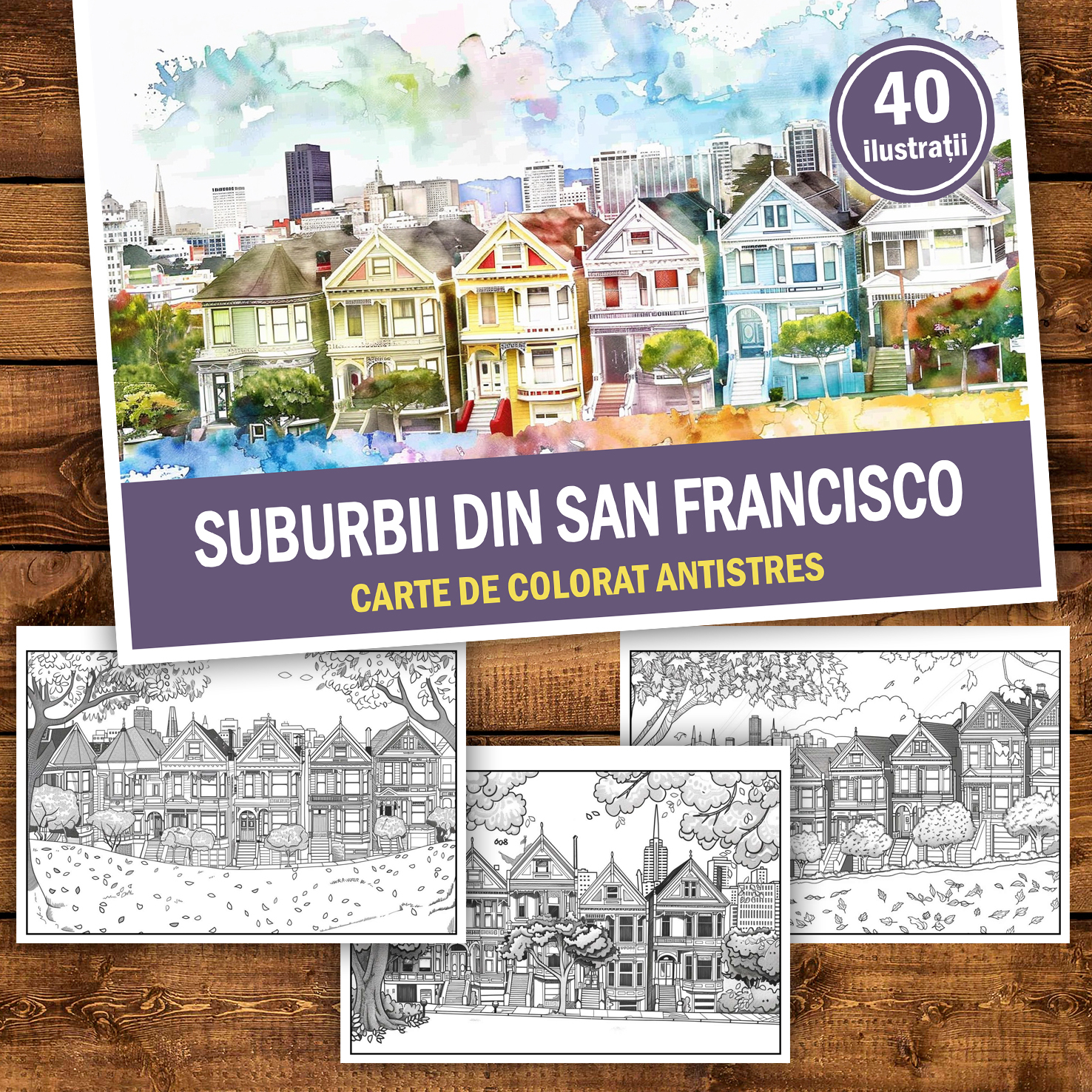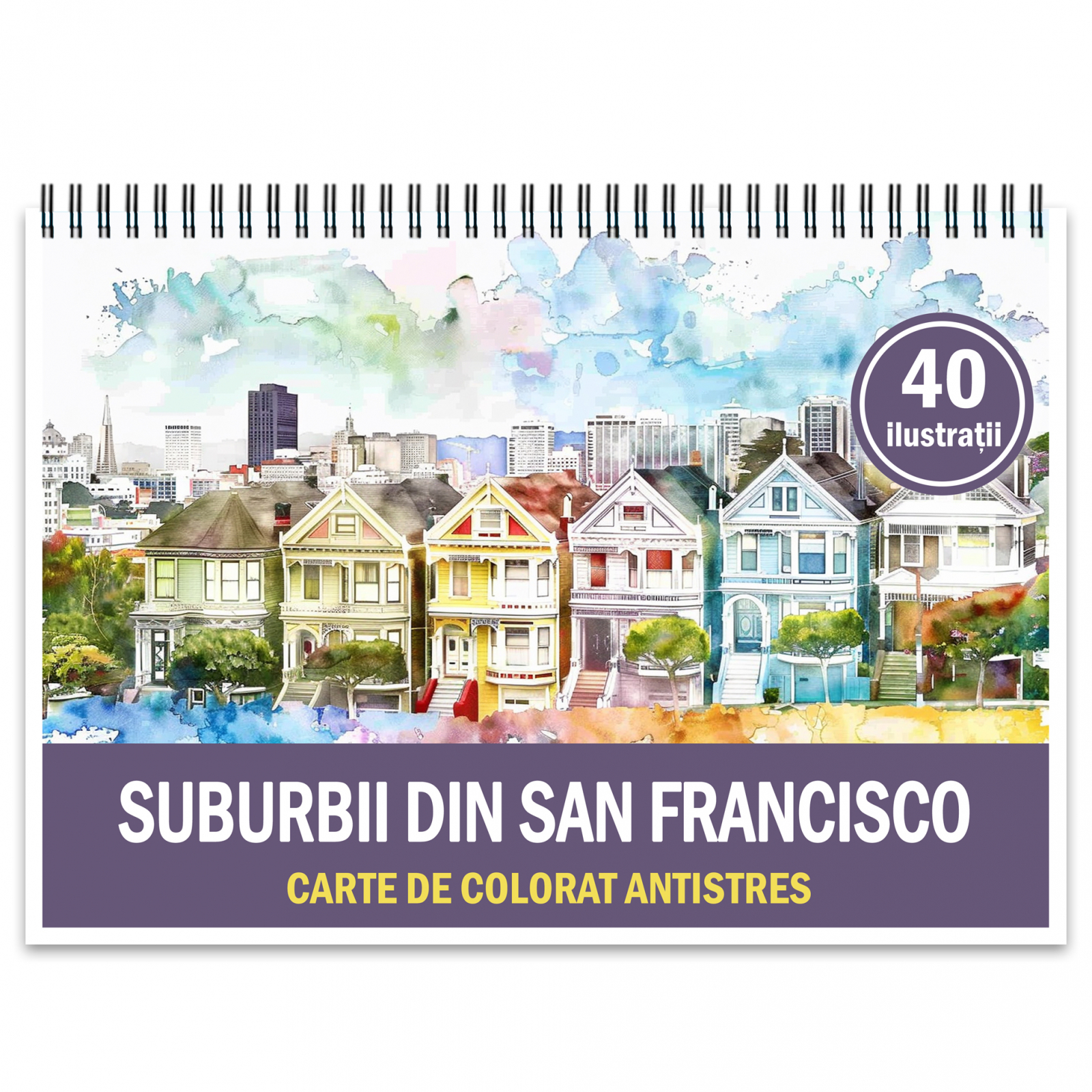 Carte de colorat antistres , 40 de ilustratii Suburbii din San Francisco, 86 pagini