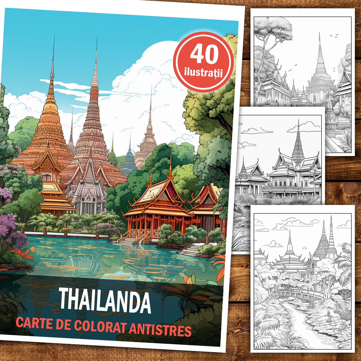 Carte de colorat antistres , 40 de ilustratii Thailanda, 86 pagini
