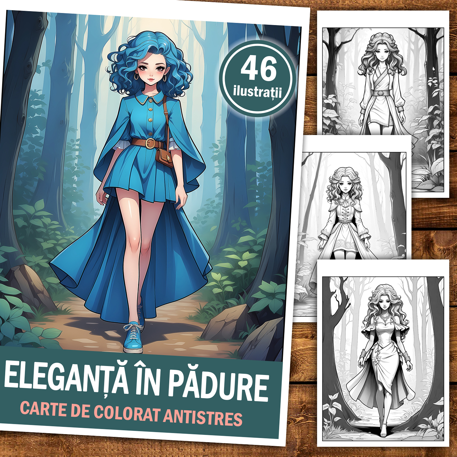 Carte de colorat antistres , 46 de ilustratii Eleganta din Padure, 98 pagini