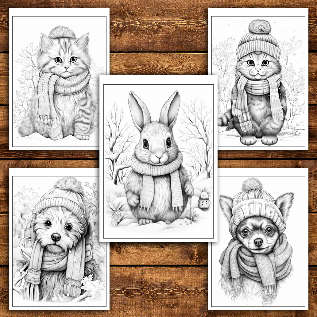 Carte de colorat antistres , 50 de ilustratii Animalute Iarna, 106 pagini