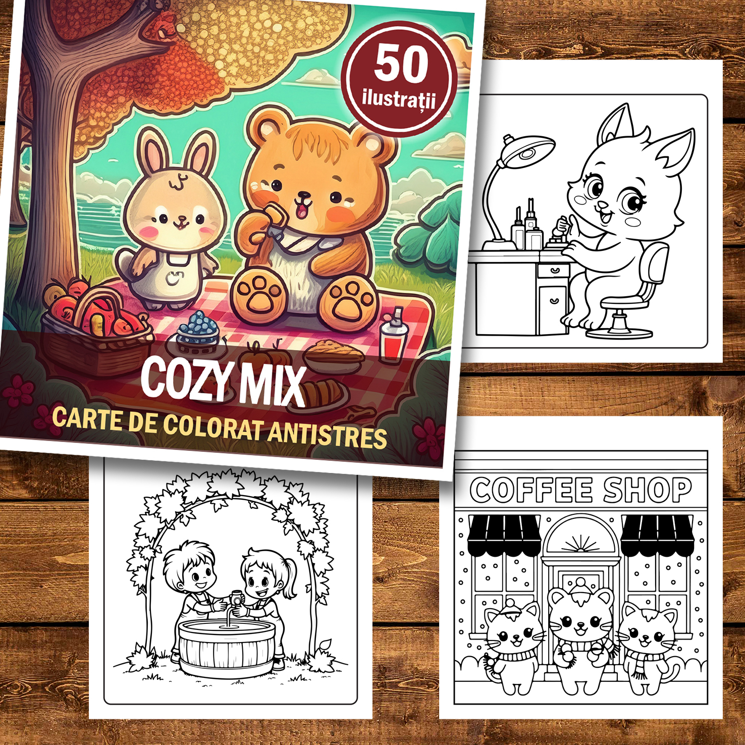 Carte de colorat antistres , 50 de ilustratii Cozy Mix, 106 pagini