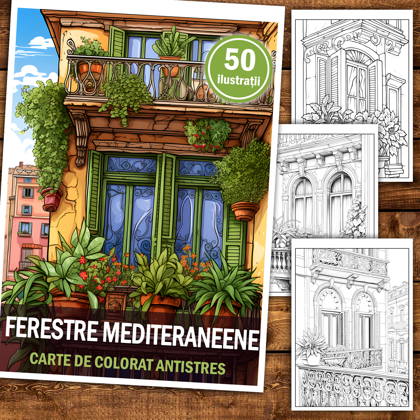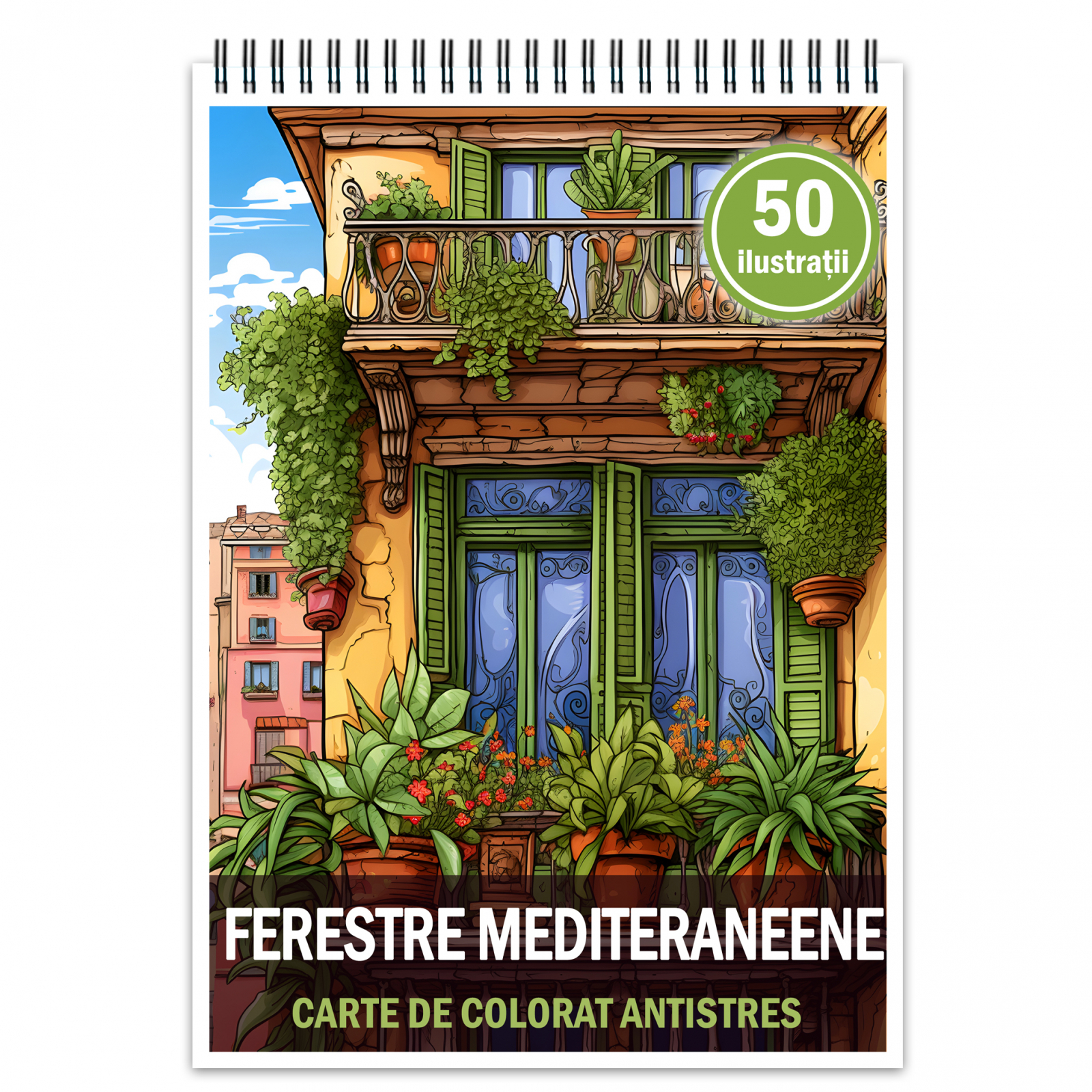 Carte de colorat antistres , 50 de ilustratii Ferestre mediteraneene, 106 pagini