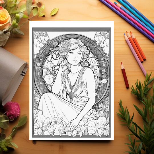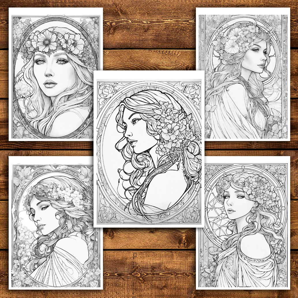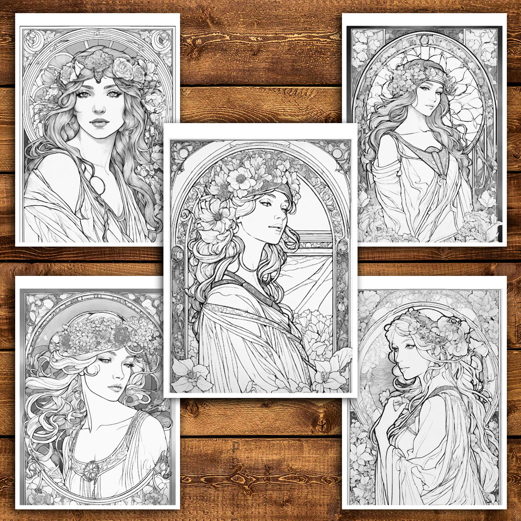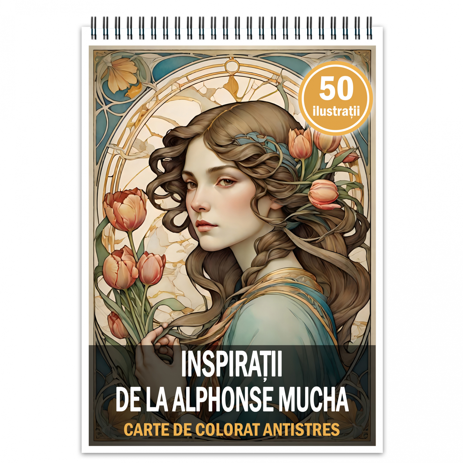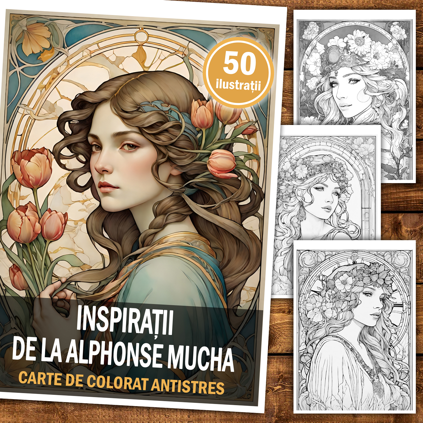 Carte de colorat antistres , 50 de ilustratii Inspiratii de la Alphonse Mucha, 106 pagini