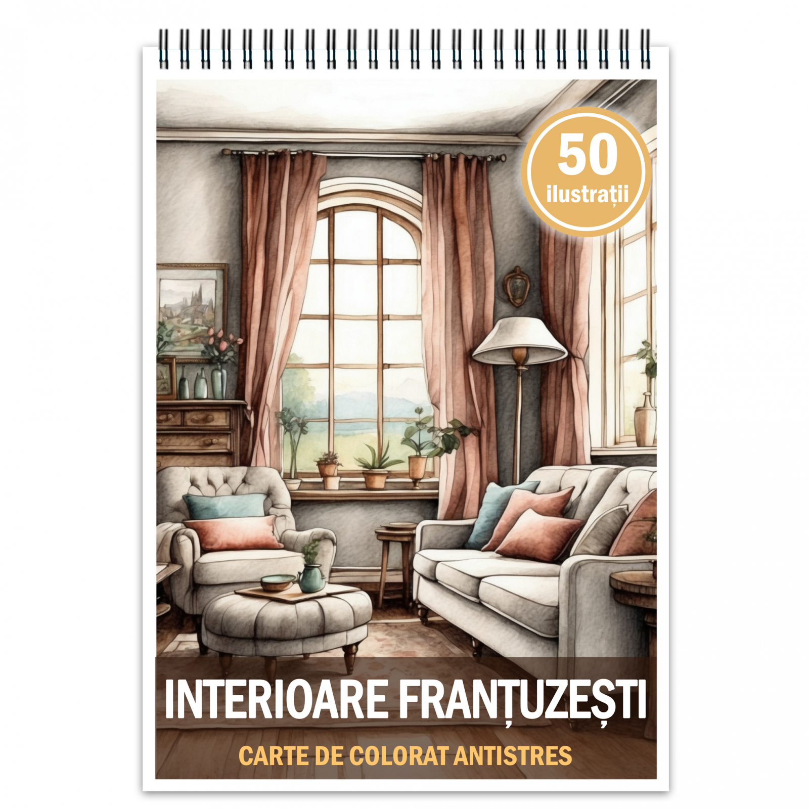 Carte de colorat antistres , 50 de ilustratii Interioare Frantuzesti, 106 pagini