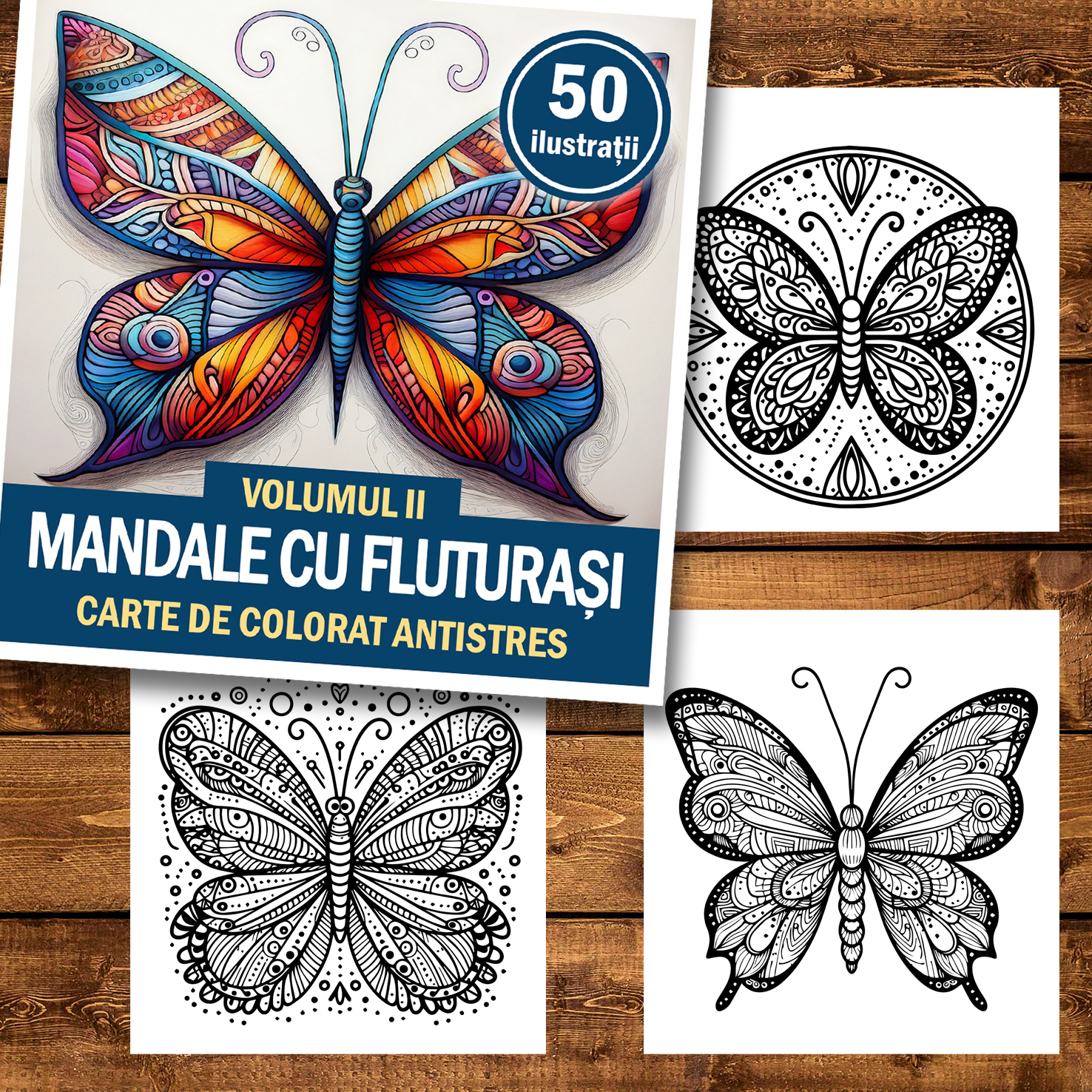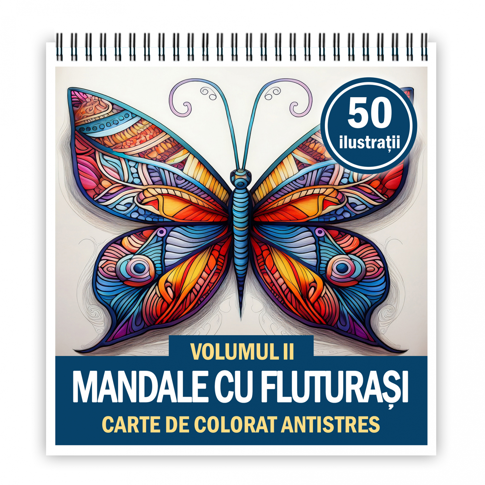 Carte de colorat antistres , 50 de ilustratii Mandale cu Fluturasi - Volumul II, 106 pagini