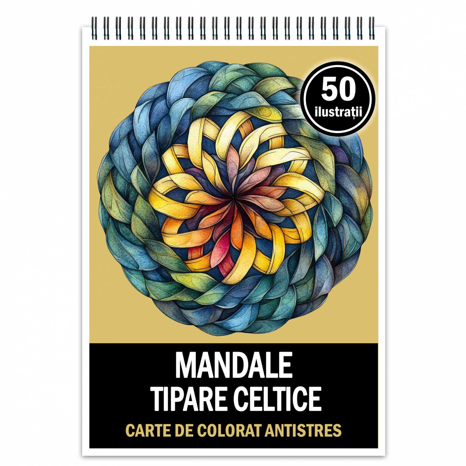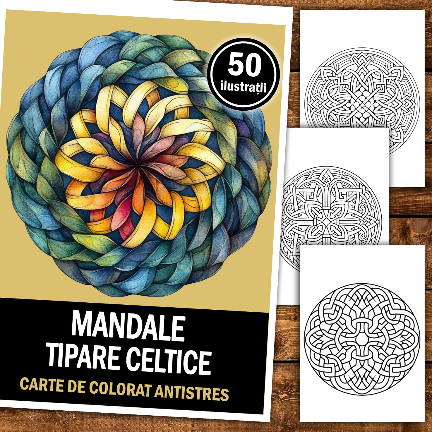 Carte de colorat antistres , 50 de ilustratii Mandale cu Tipare Celtice, 106 pagini