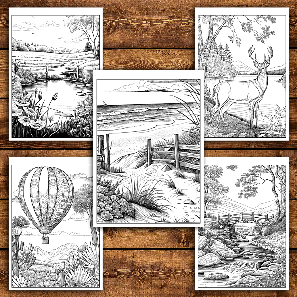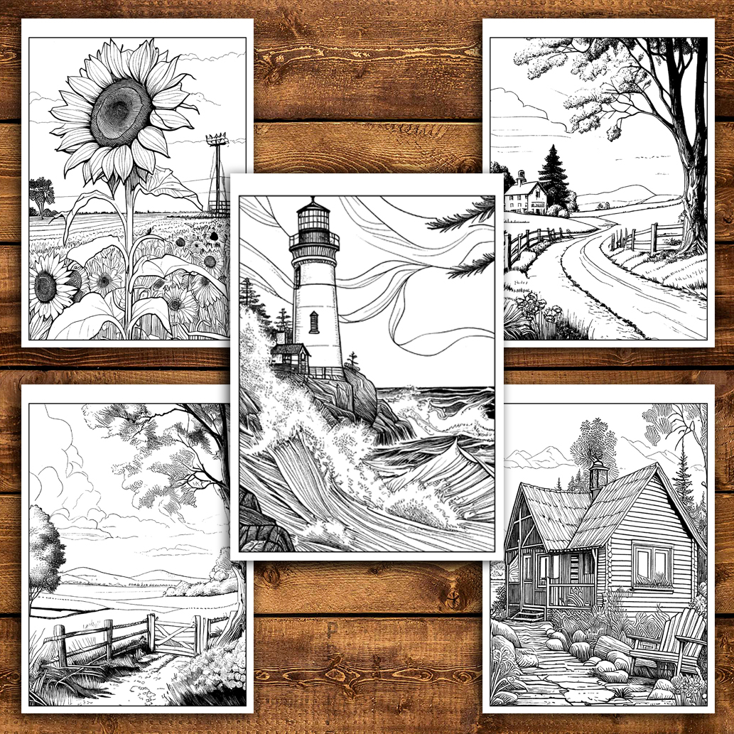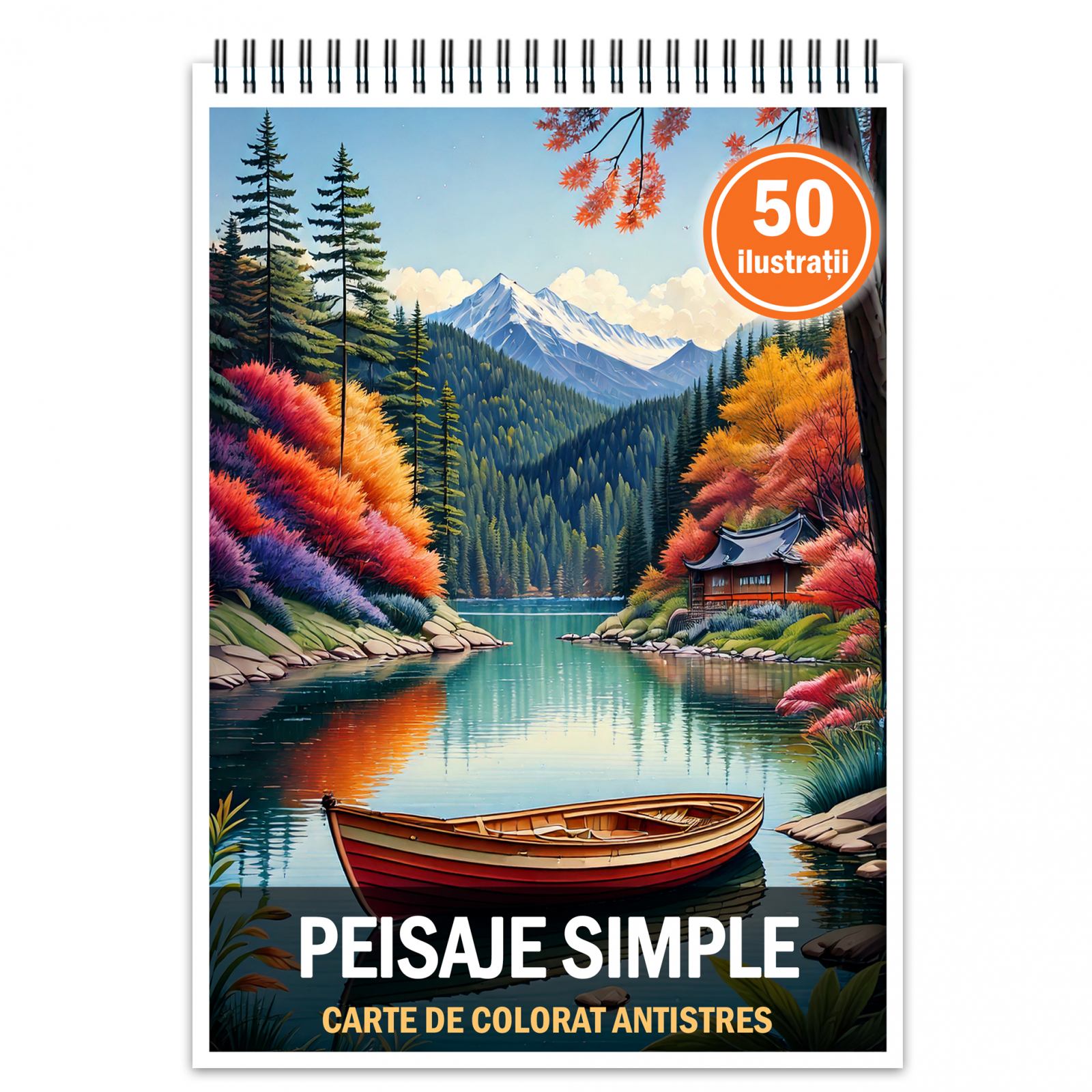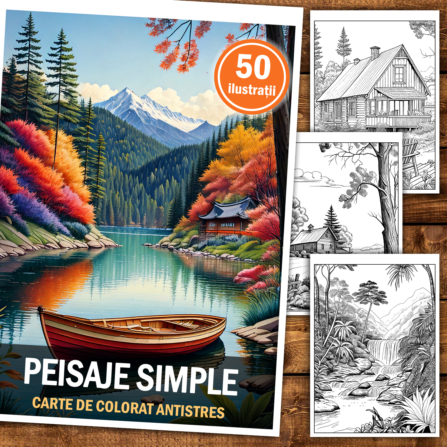 Carte de colorat antistres , 50 de ilustratii Peisaje Simple, 106 pagini