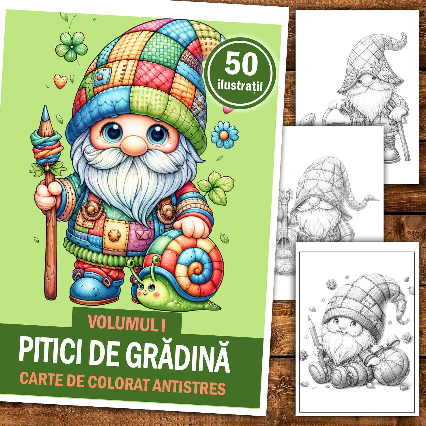 Carte de colorat antistres , 50 de ilustratii Pitici de Gradina - Volumul I, 106 pagini