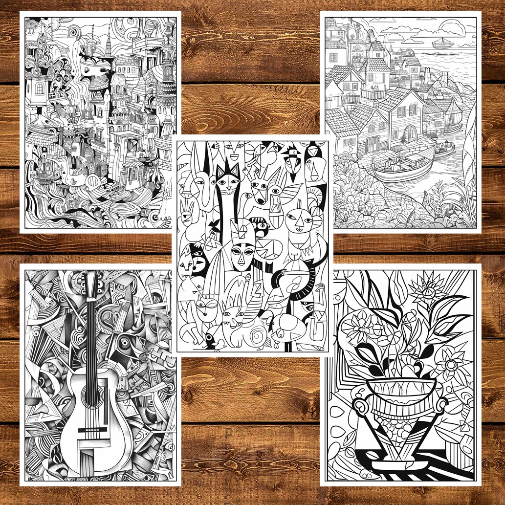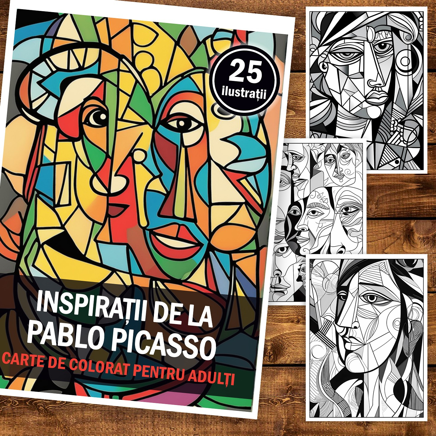 Carte de colorat pentru adulti, 25 de ilustratii, Pablo Picasso, 56 pagini