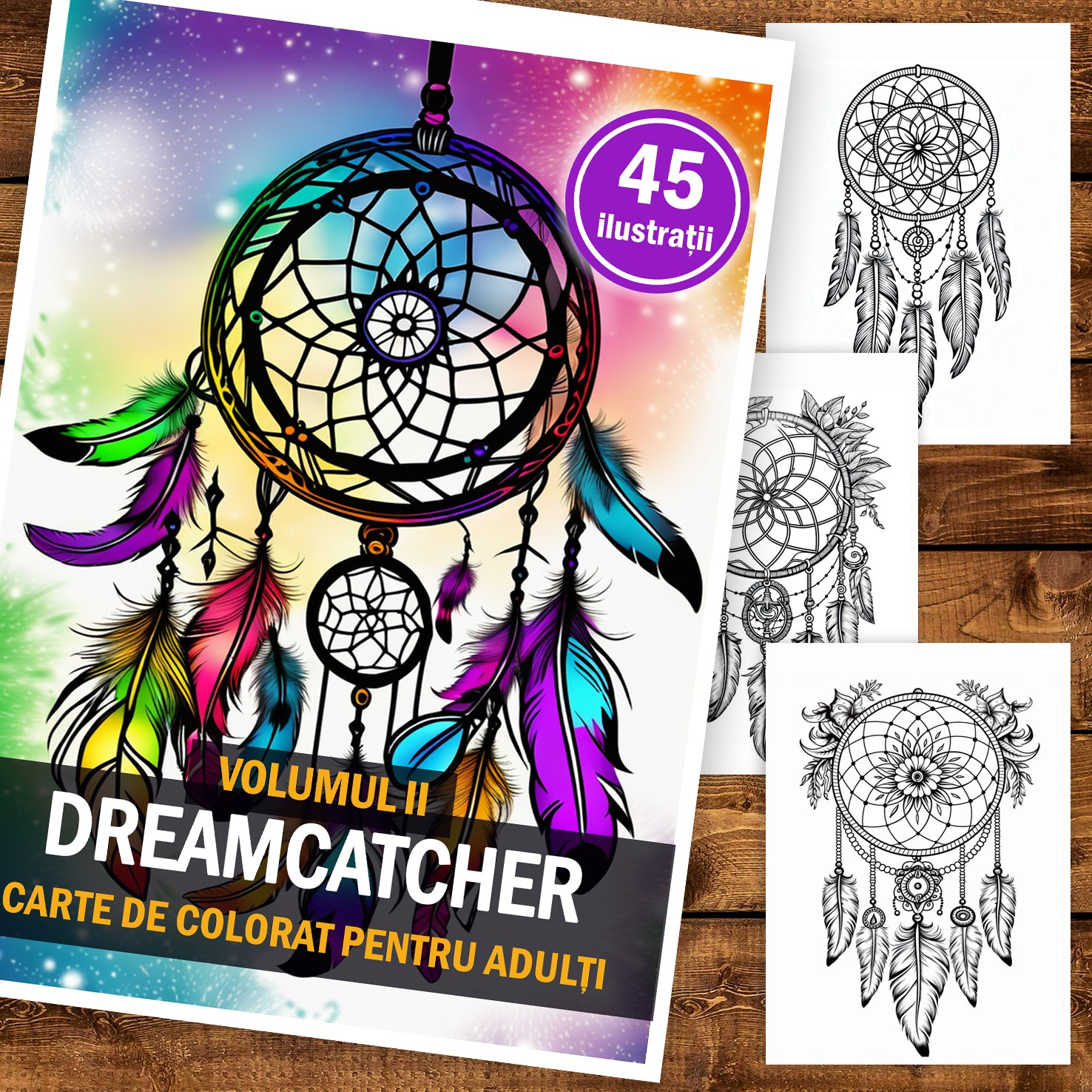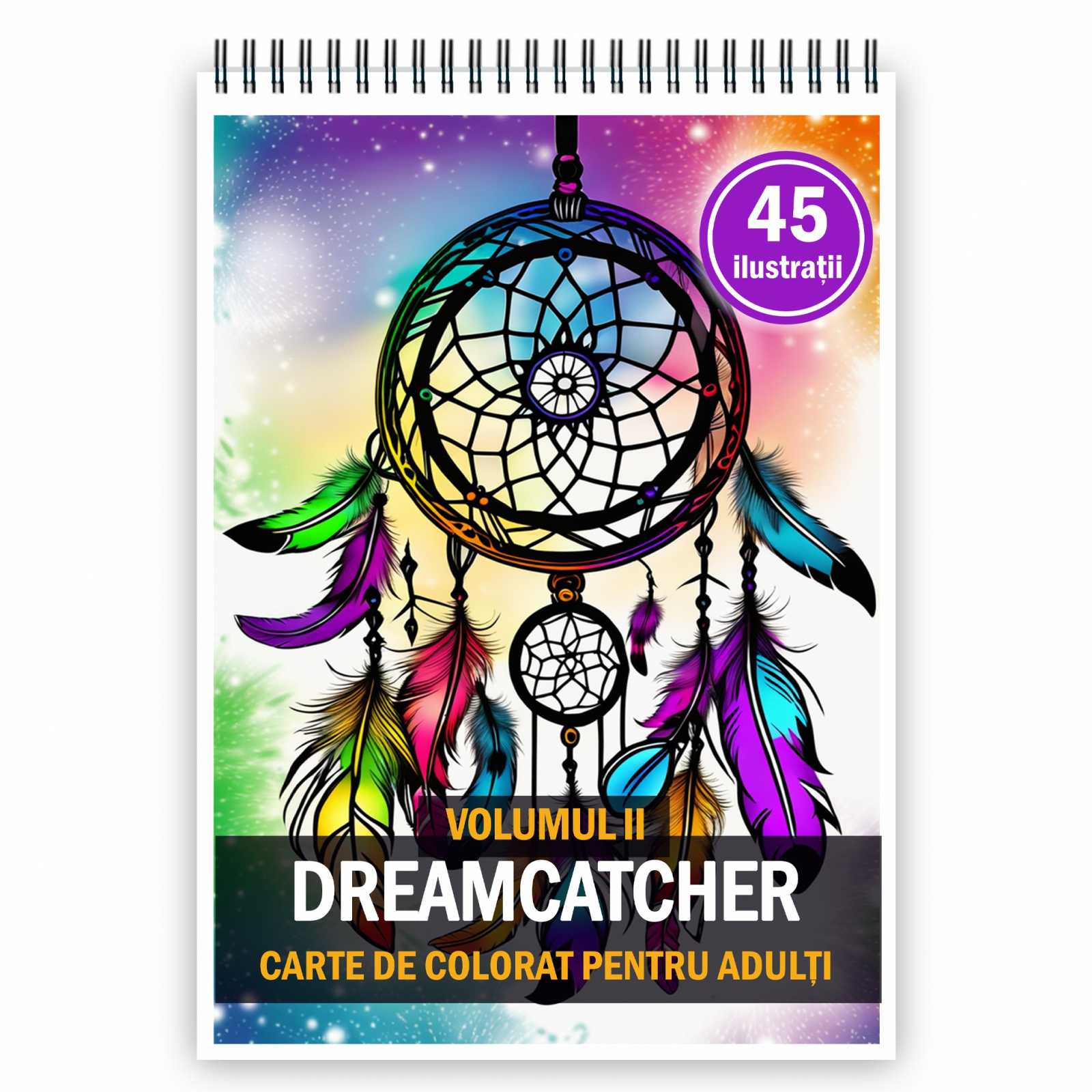 Carte de colorat pentru adulti, 45 de ilustratii, Dreamcatcher - Volumul II, 96 pagini