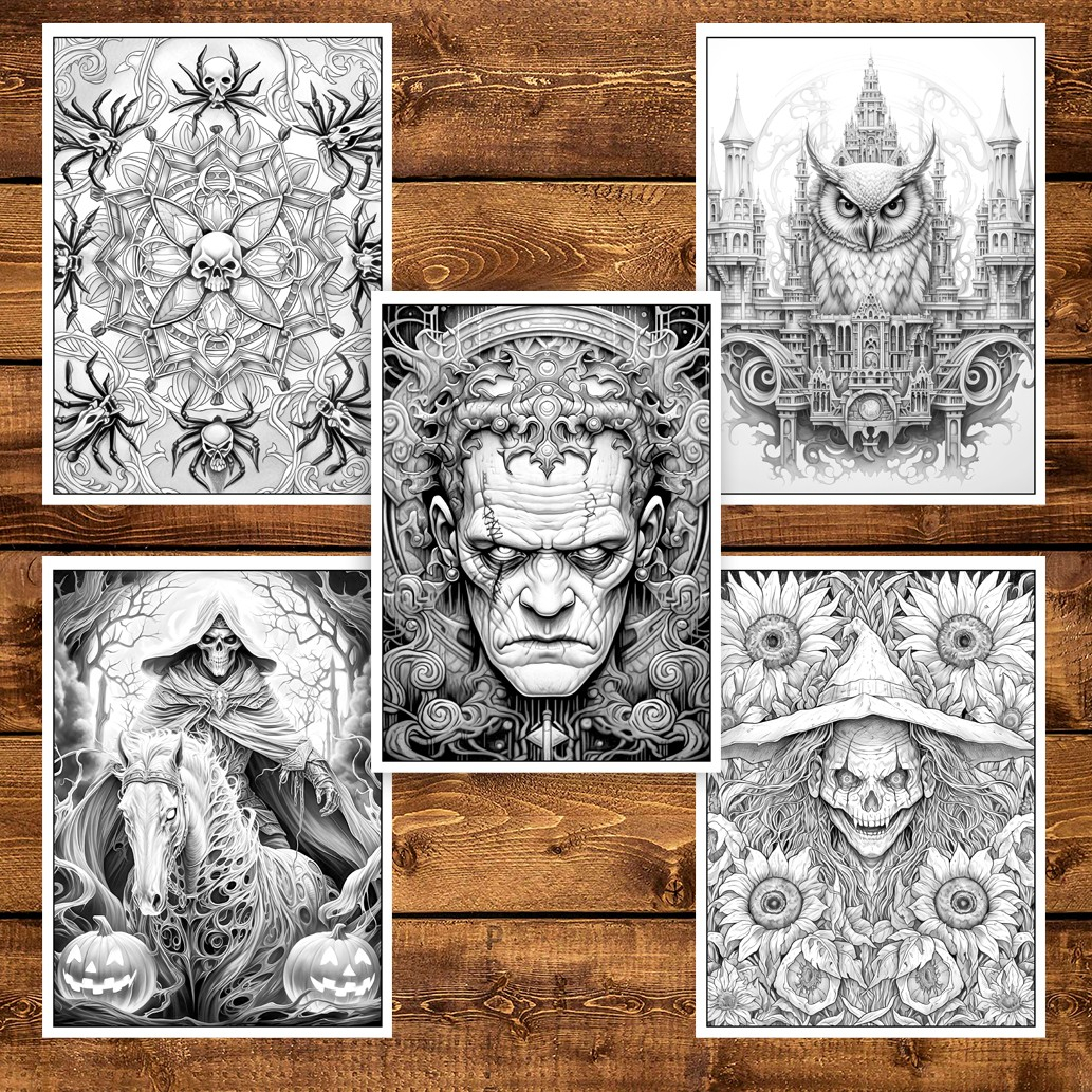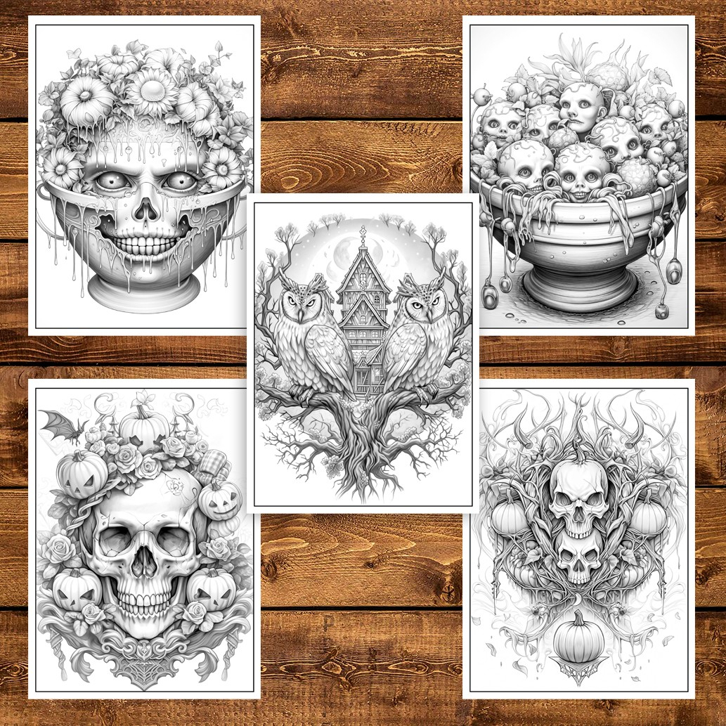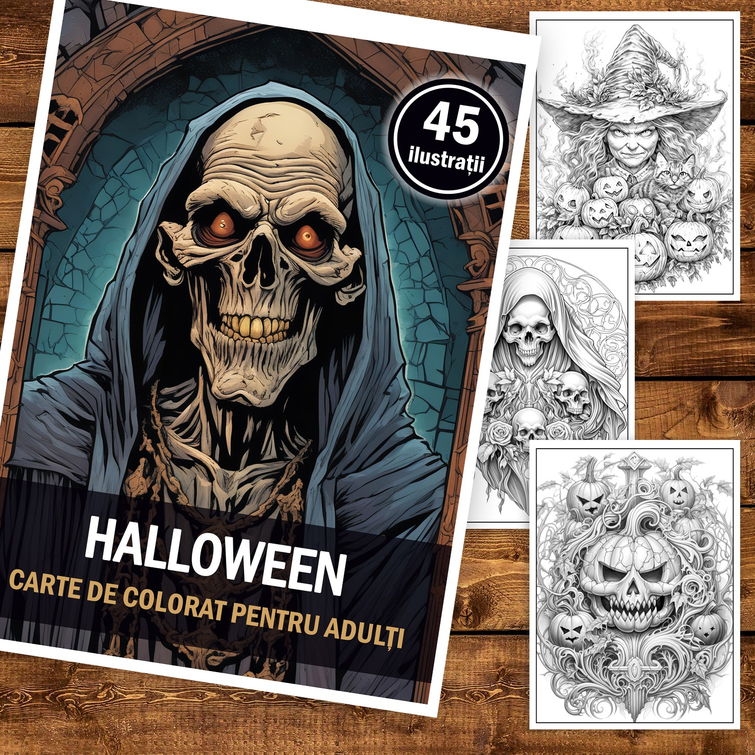 Carte de colorat pentru adulti, 45 de ilustratii, Halloween, 96 pagini