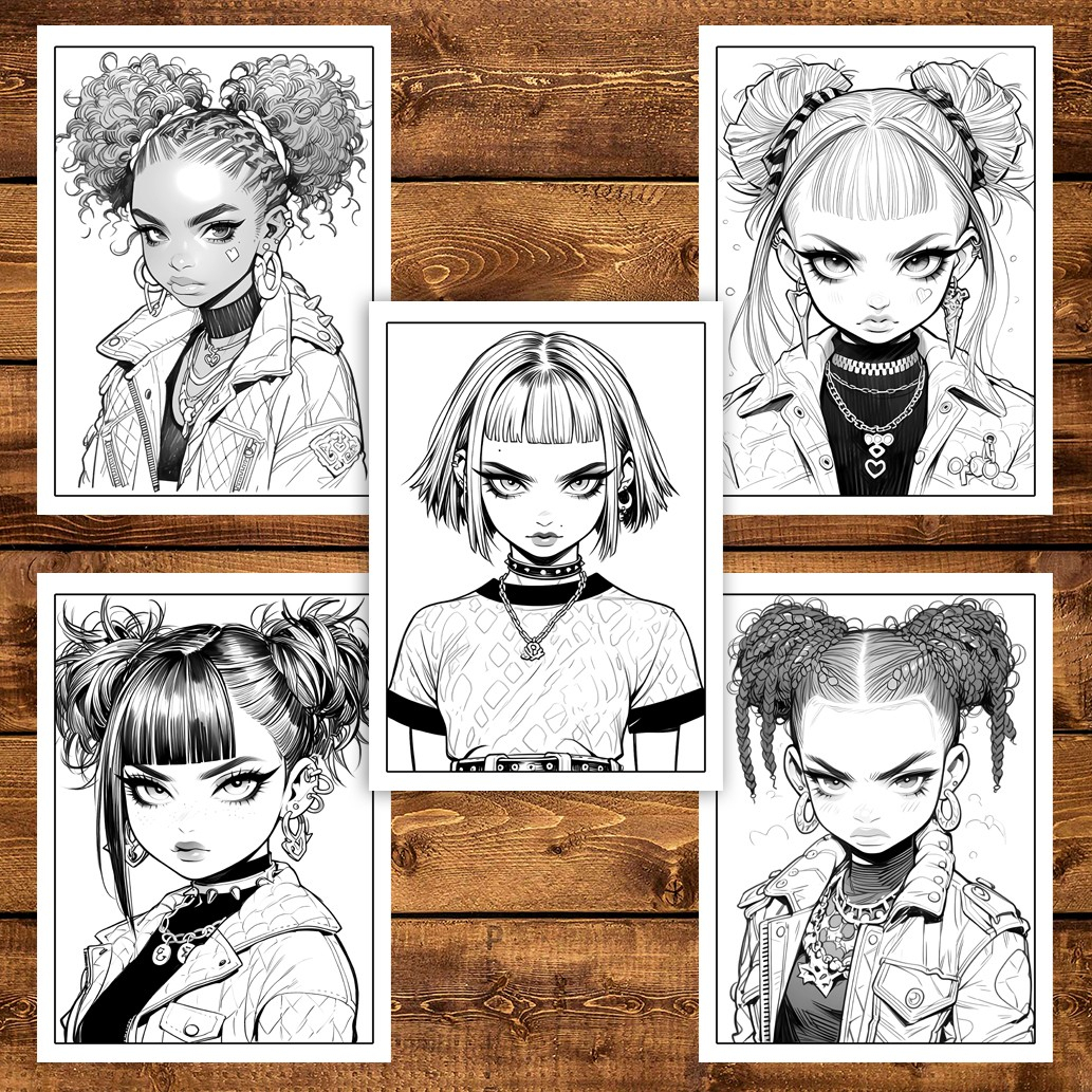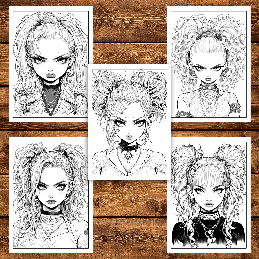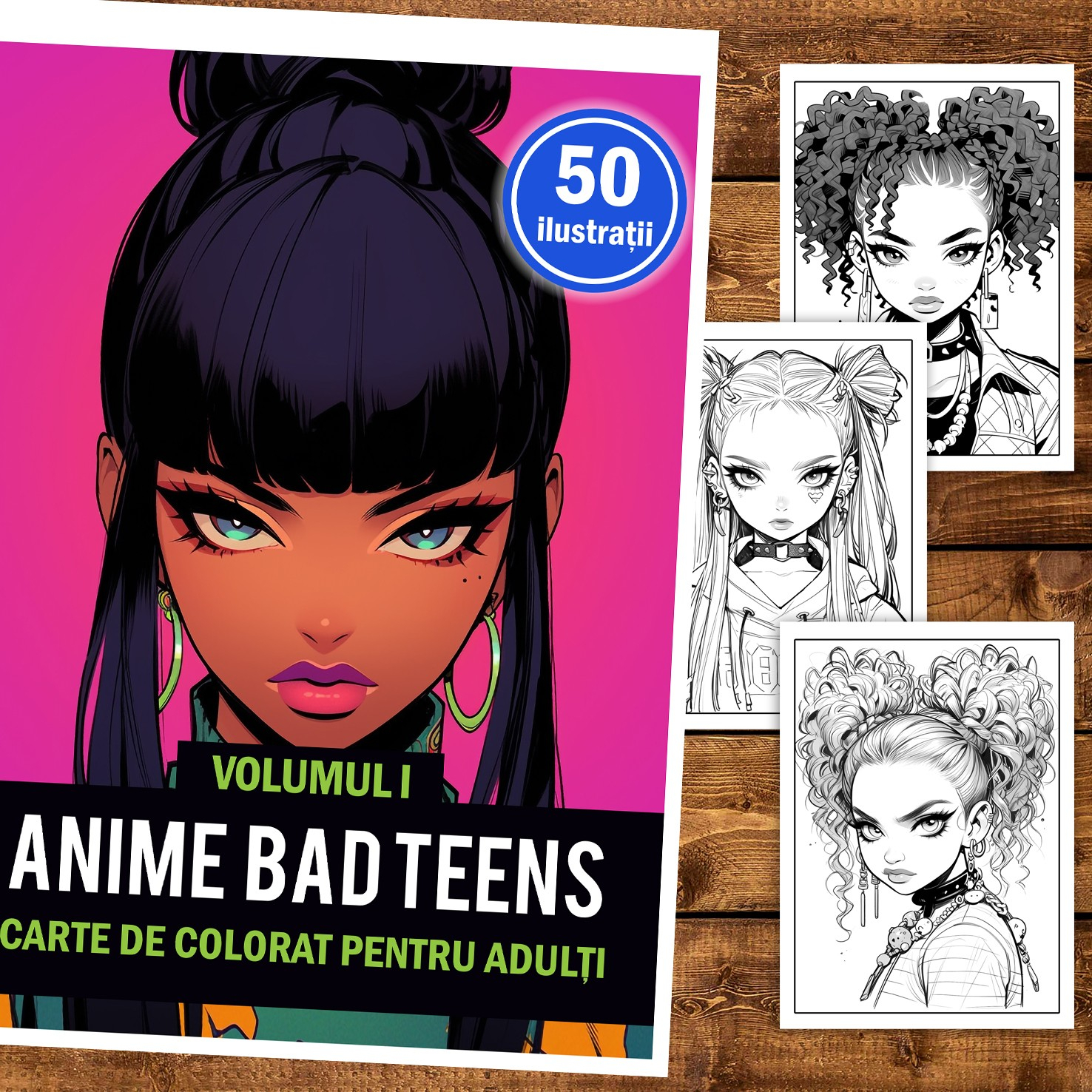 Carte de colorat pentru adulti, 50 de ilustratii, Anime Bad Teens - Volumul I, 106 pagini