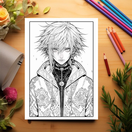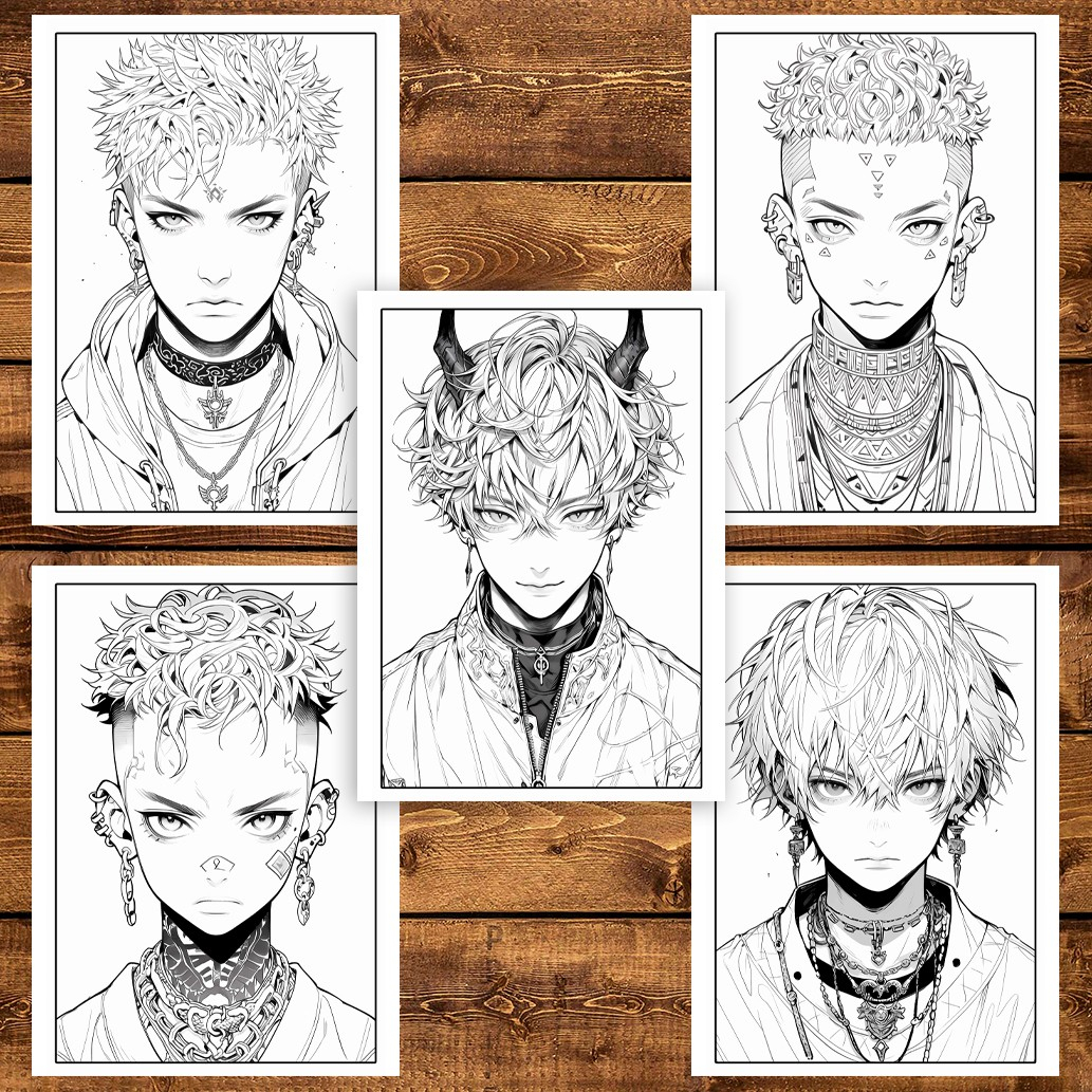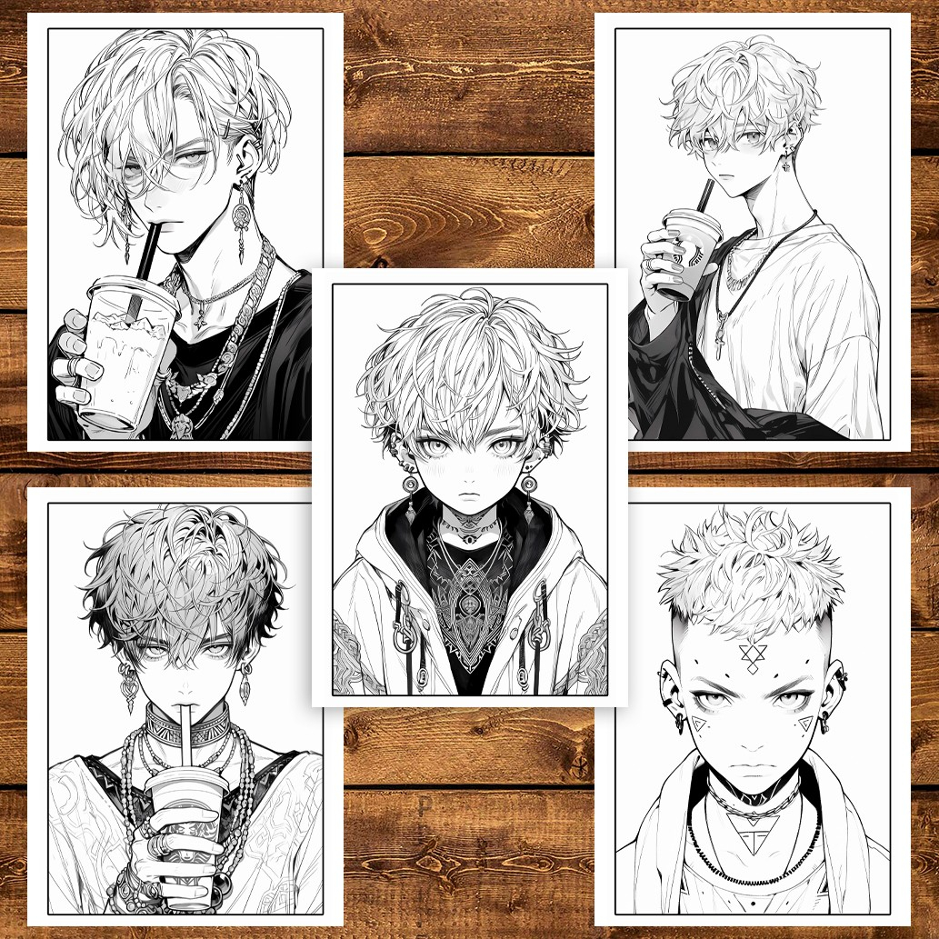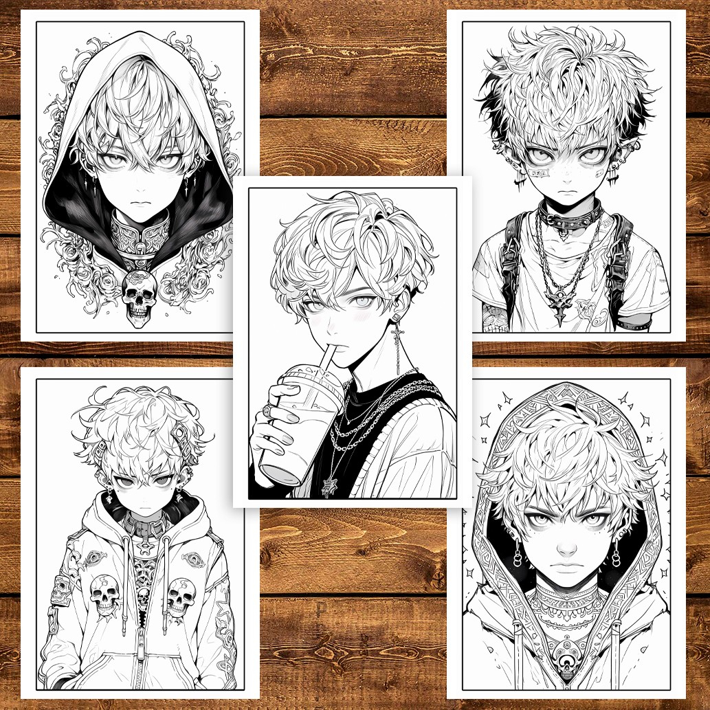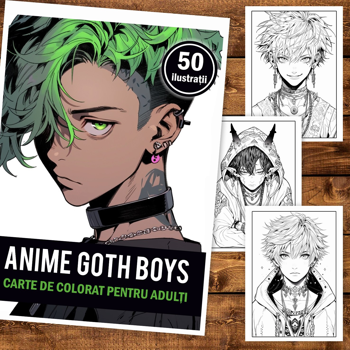 Carte de colorat pentru adulti, 50 de ilustratii, Anime Goth Boys, 106 pagini