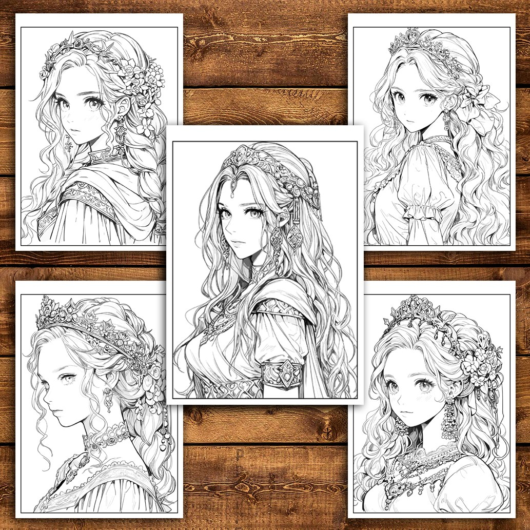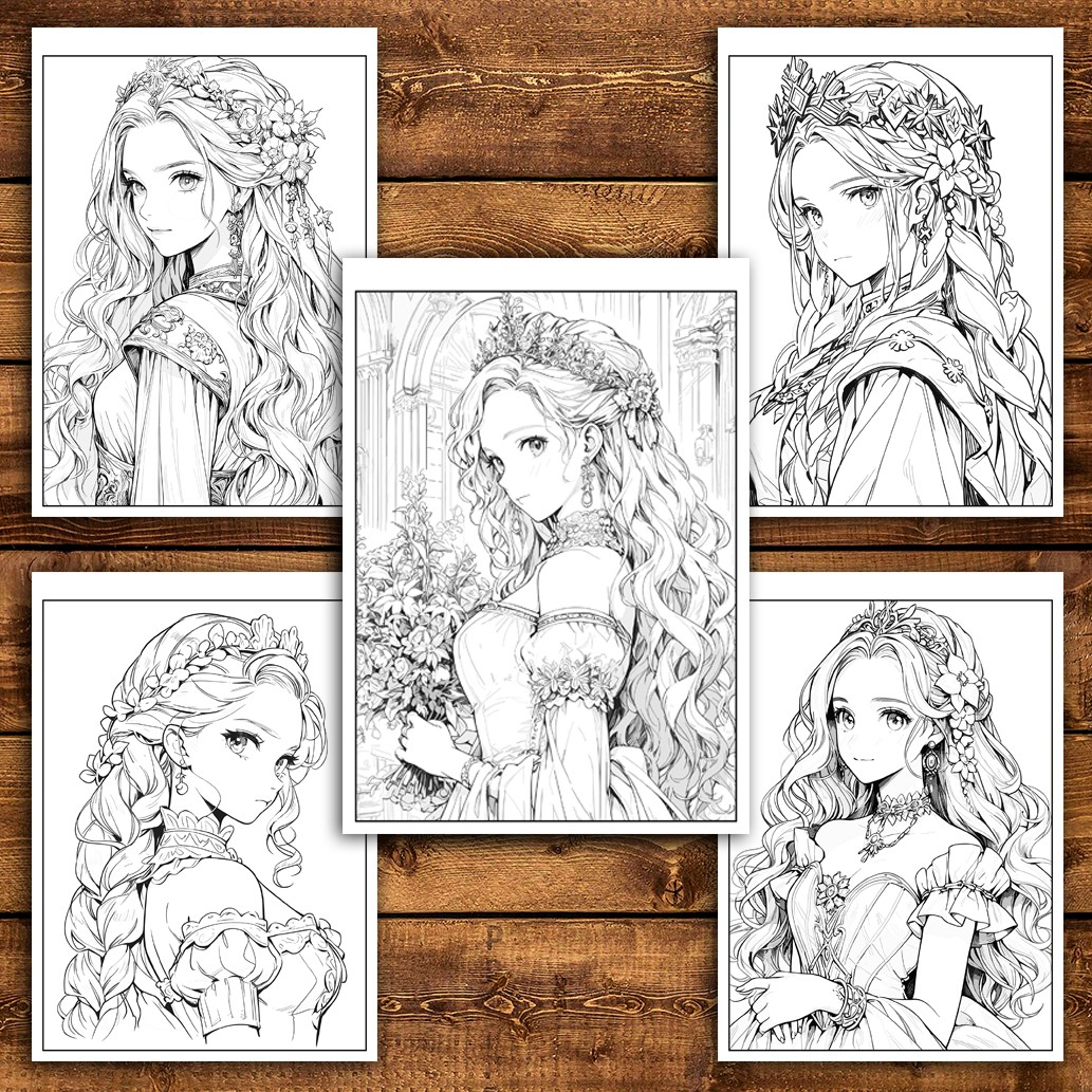 Carte de colorat pentru adulti, 50 de ilustratii, Anime Princesses - Volumul II, 106 pagini