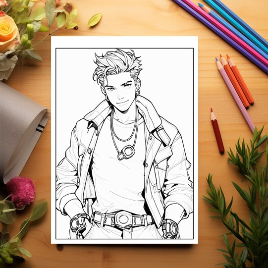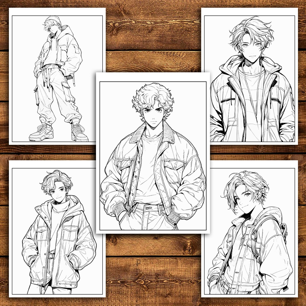 Carte de colorat pentru adulti, 50 de ilustratii Anime Retro Boys, 106 pagini