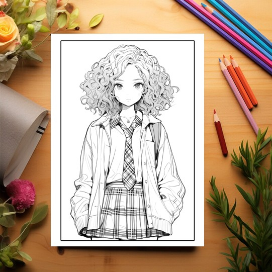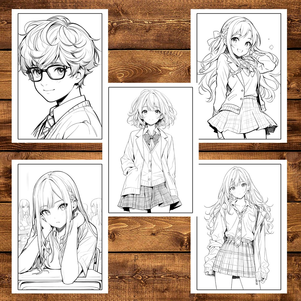 Carte de colorat pentru adulti, 50 de ilustratii Anime School Life, 106 pagini