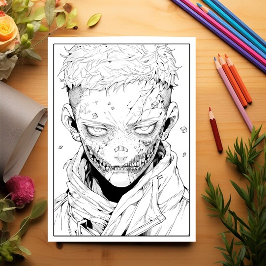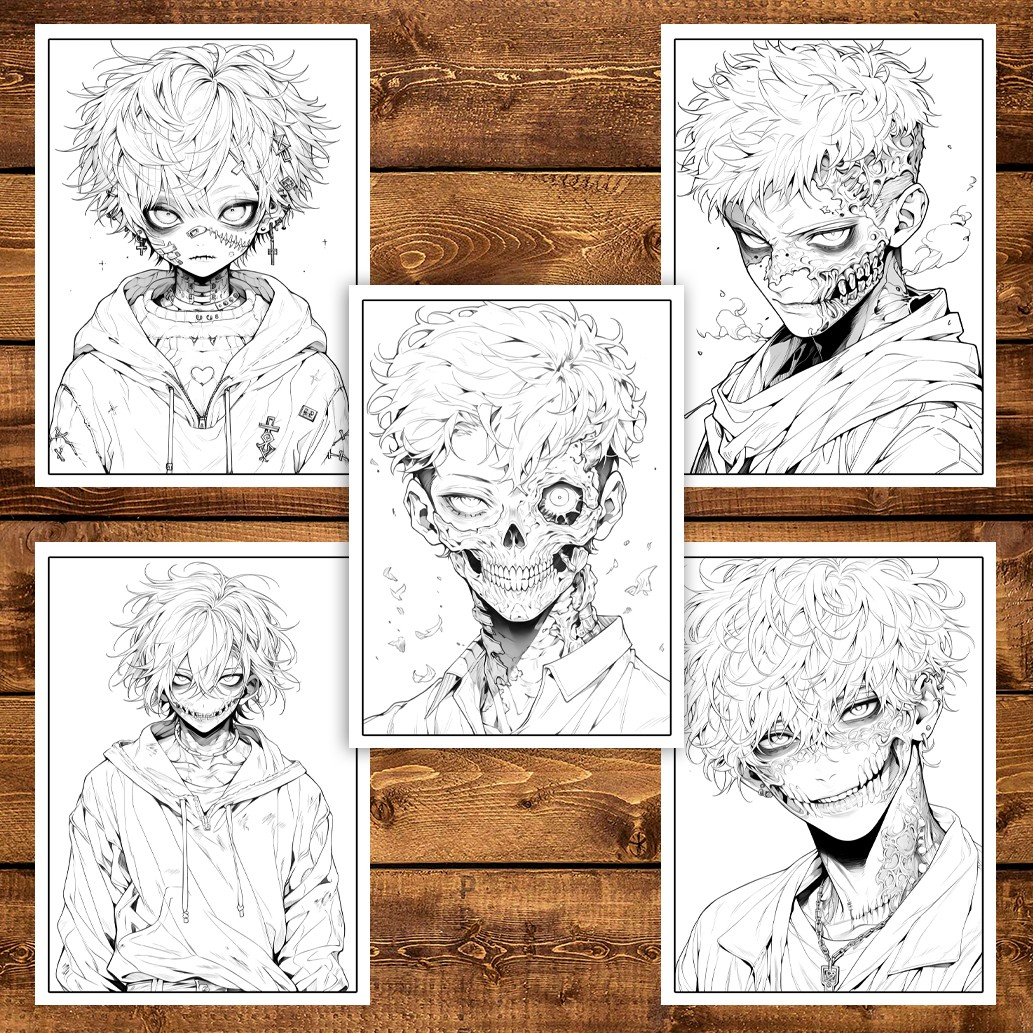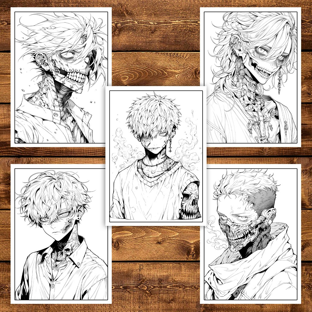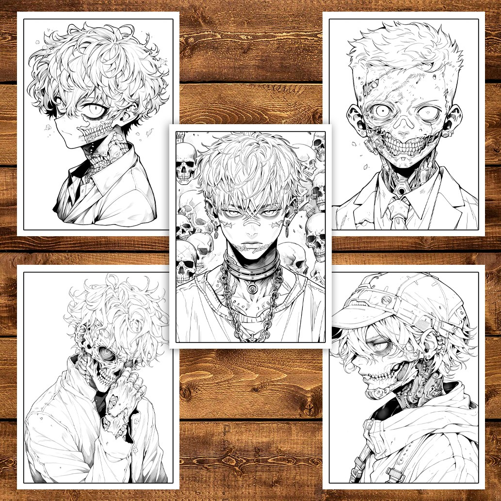 Carte de colorat pentru adulti, 50 de ilustratii Anime Zombie Boys, 106 pagini