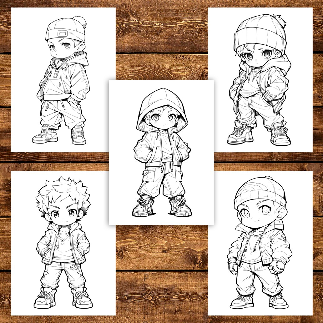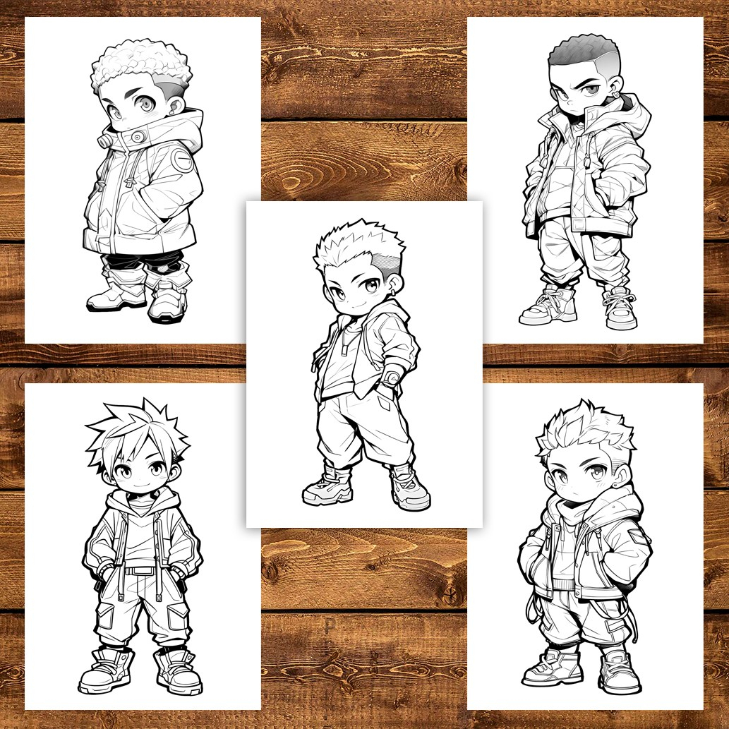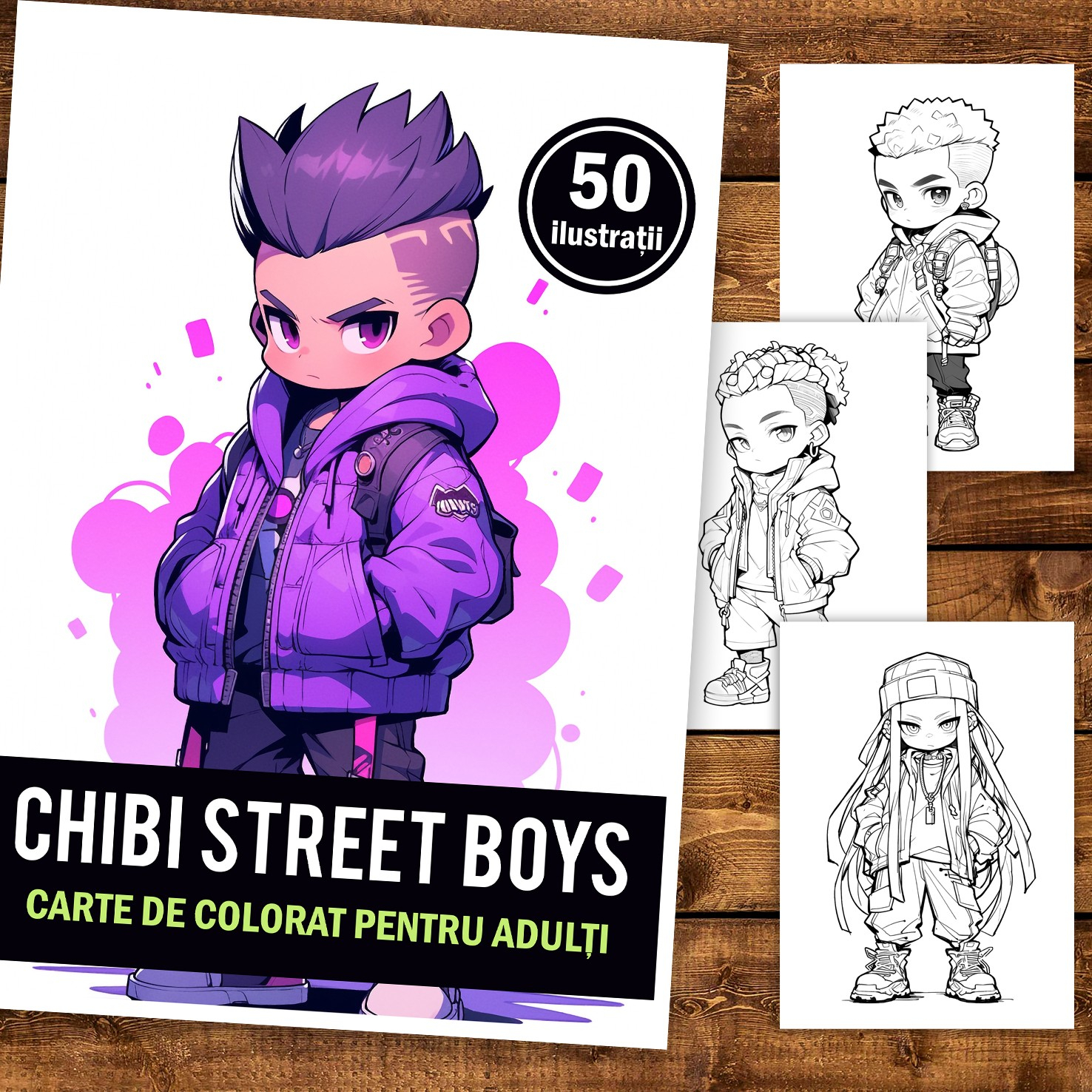 Carte de colorat pentru adulti, 50 de ilustratii Chibi Street Boys, 106 pagini