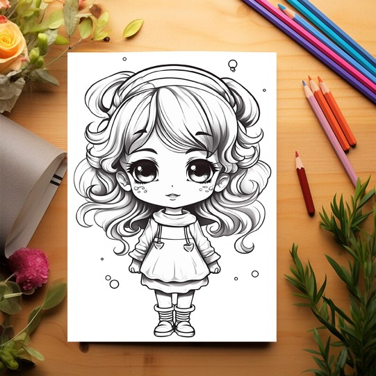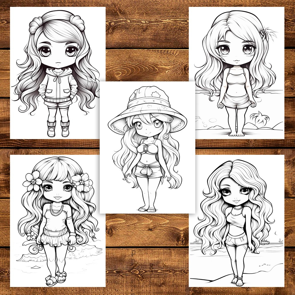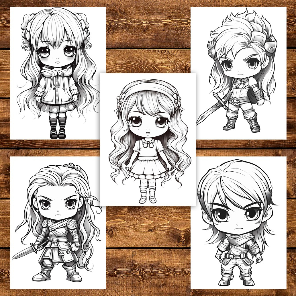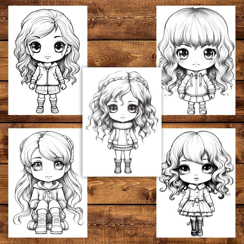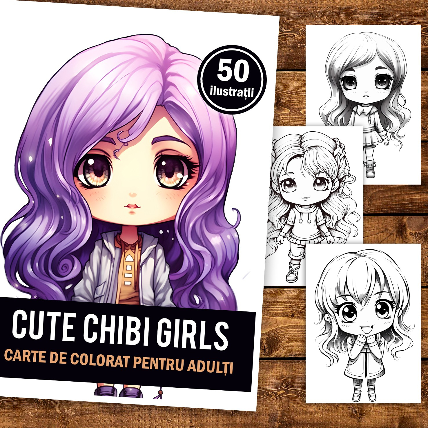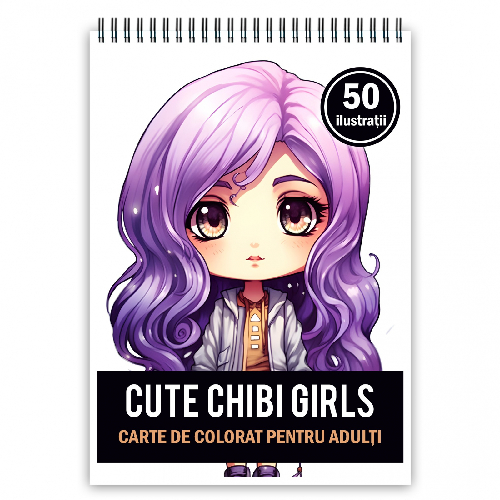Carte de colorat pentru adulti, 50 de ilustratii Cute Chibi Girls, 106 pagini