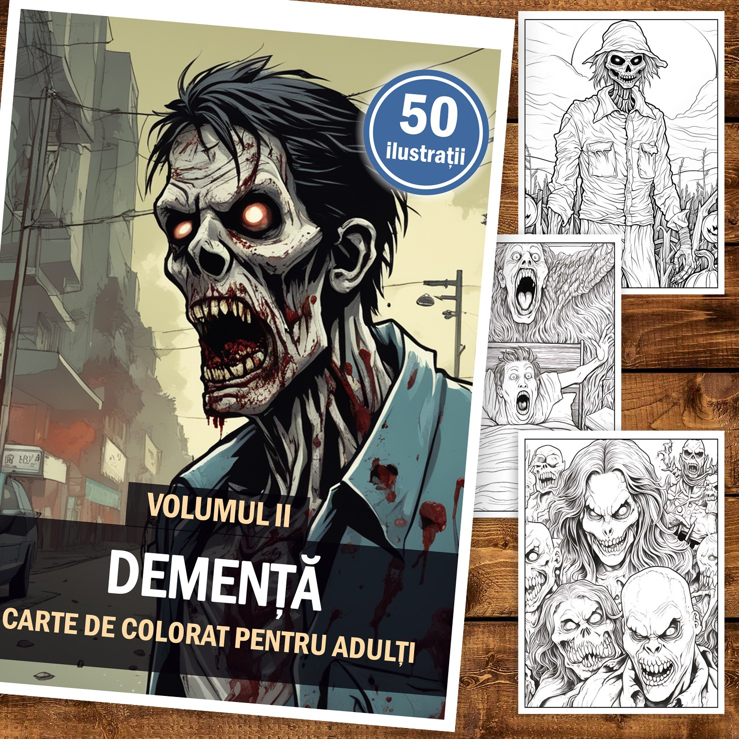 Carte de colorat pentru adulti, 50 de ilustratii, Dementa - Volumul II, 106 pagini