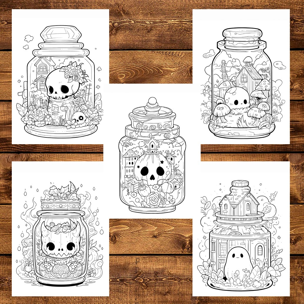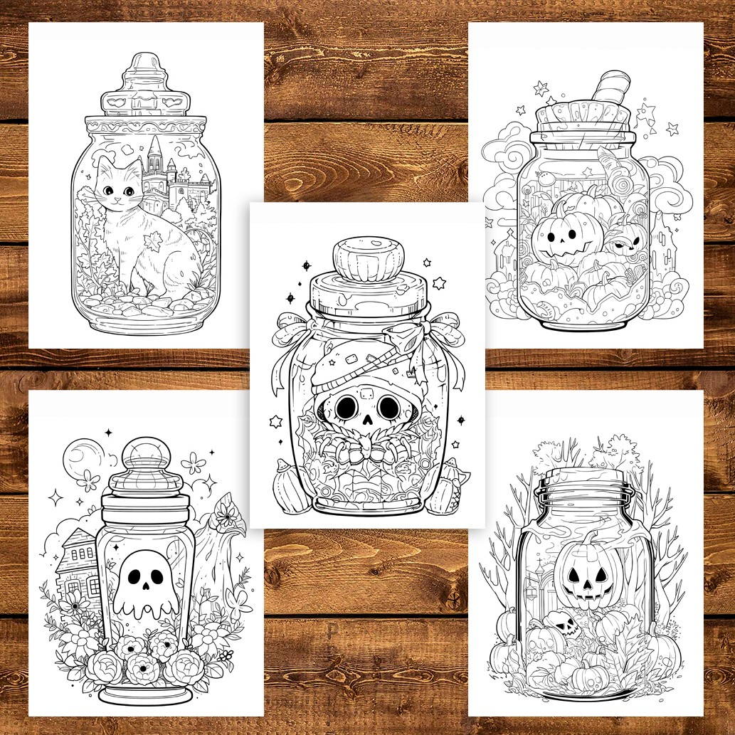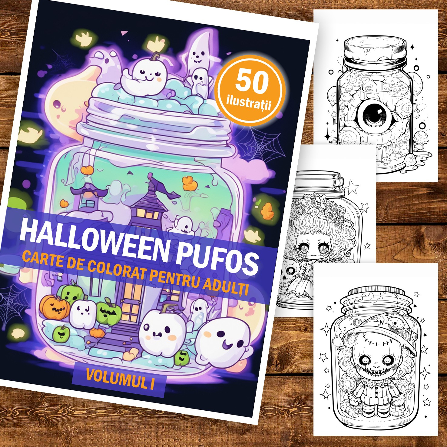 Carte de colorat pentru adulti, 50 de ilustratii, Halloween pufos - Volumul I, 106 pagini