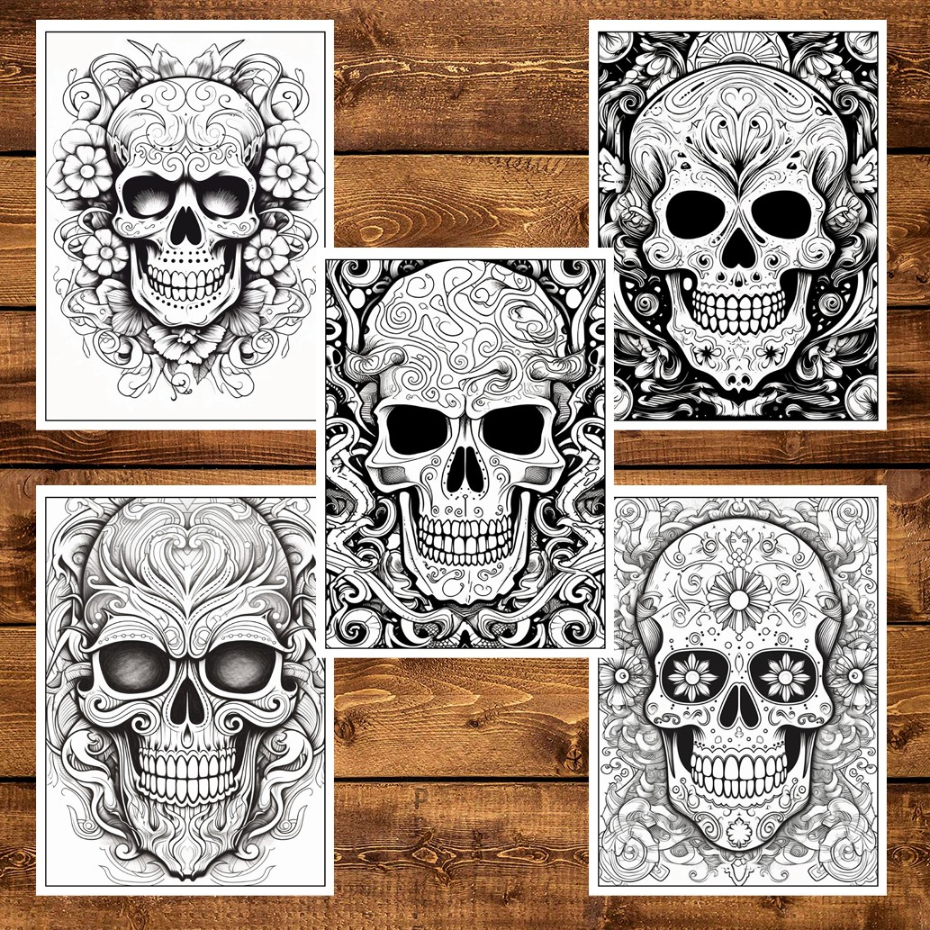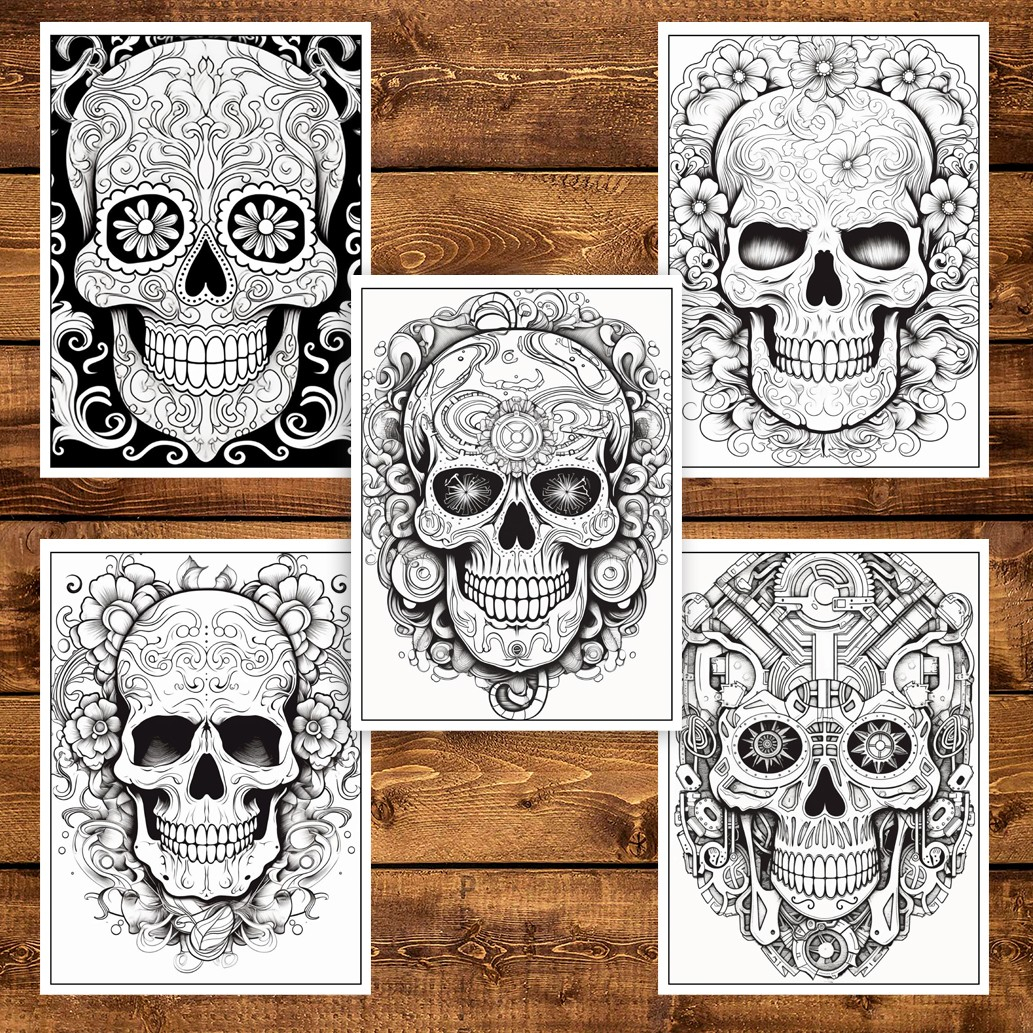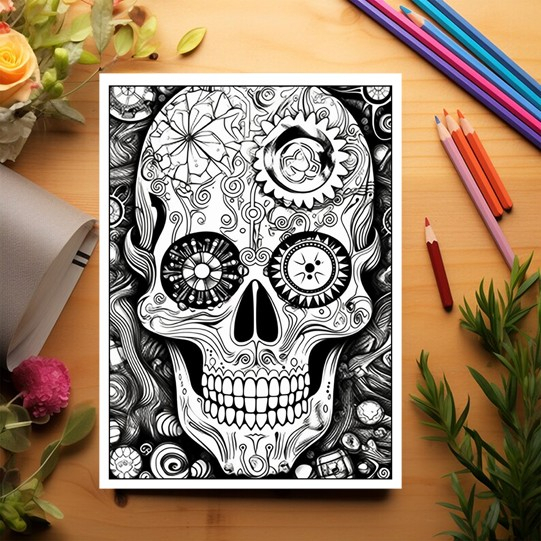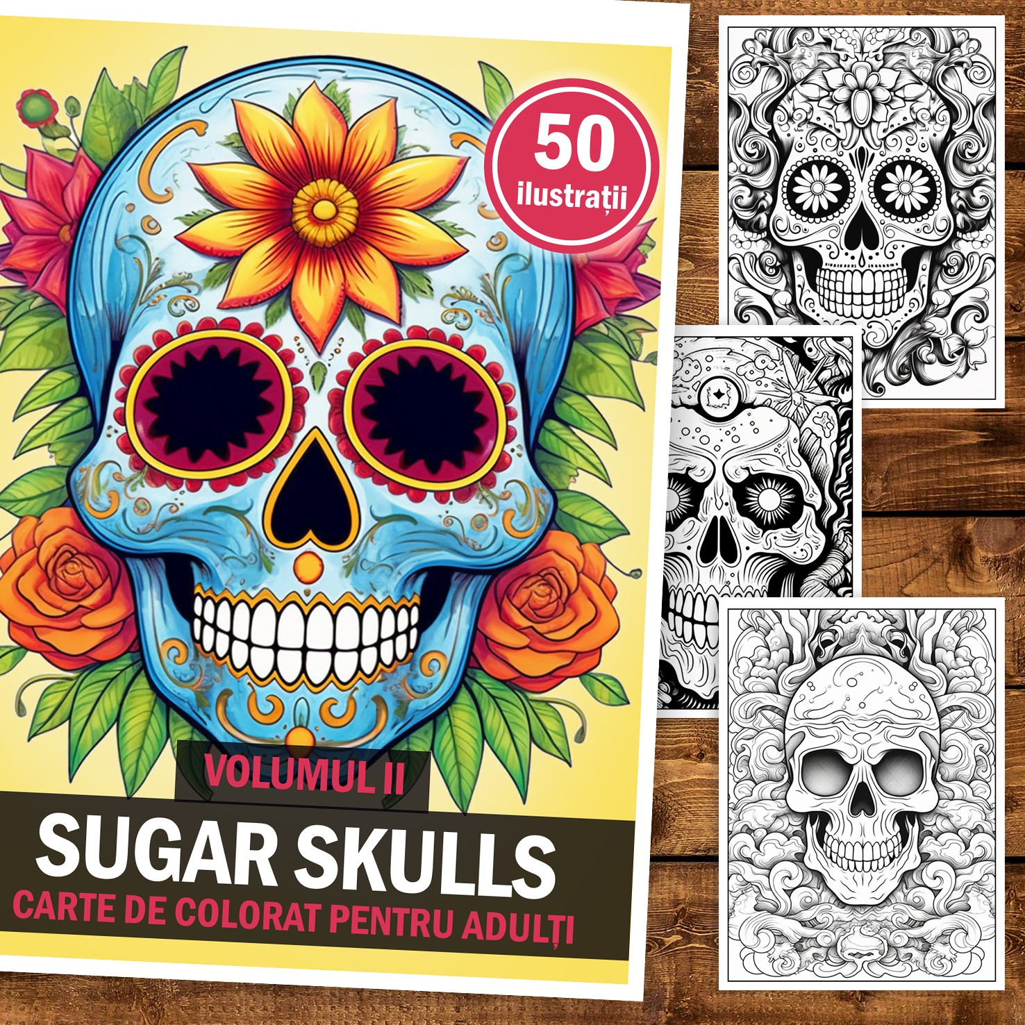 Carte de colorat pentru adulti, 50 de ilustratii, Sugar Skulls - Volumul II, 106 pagini