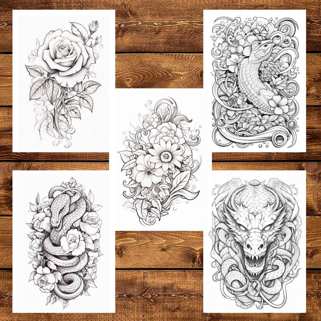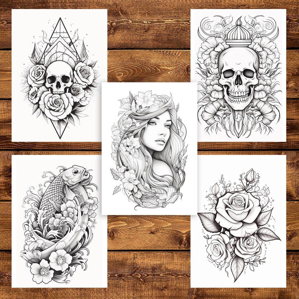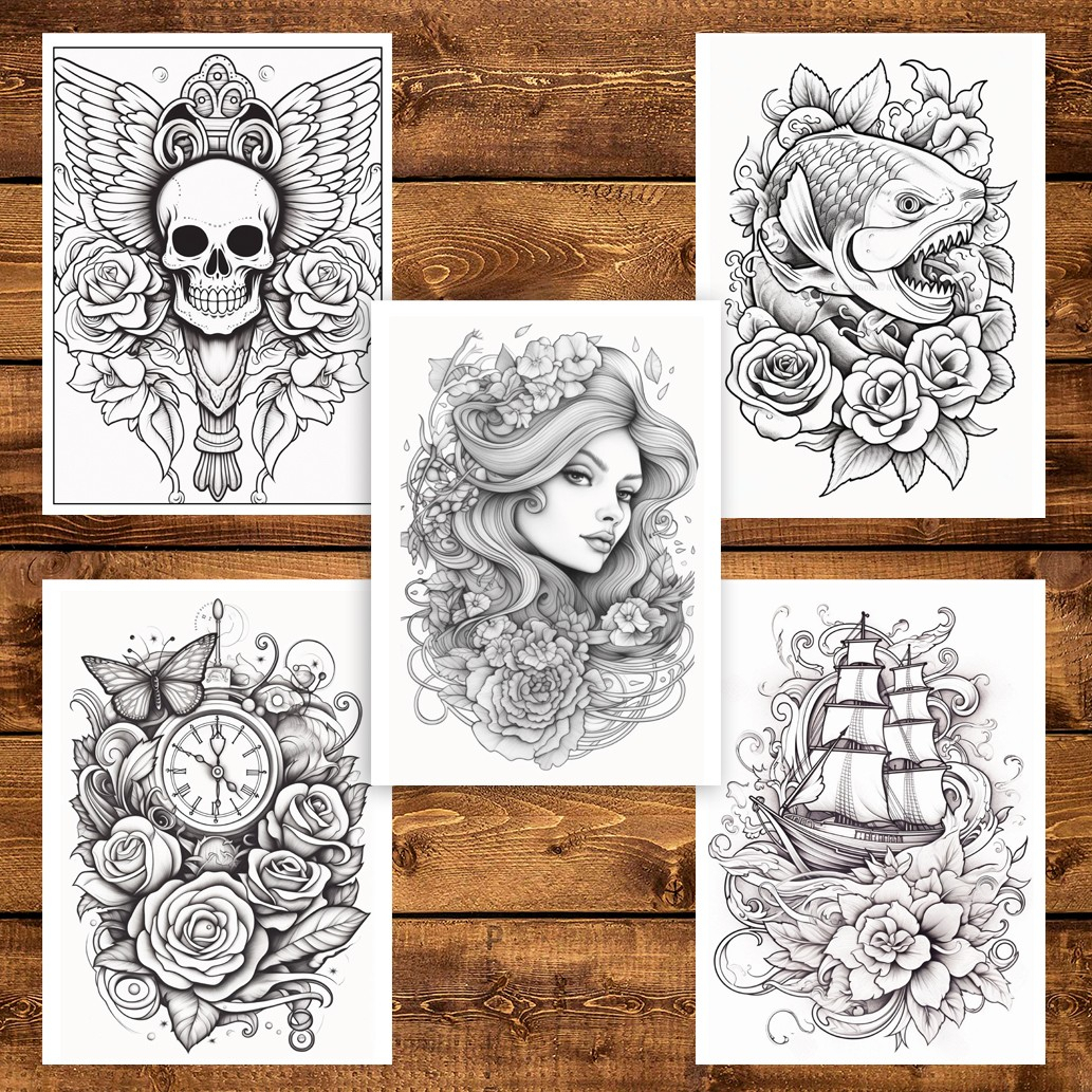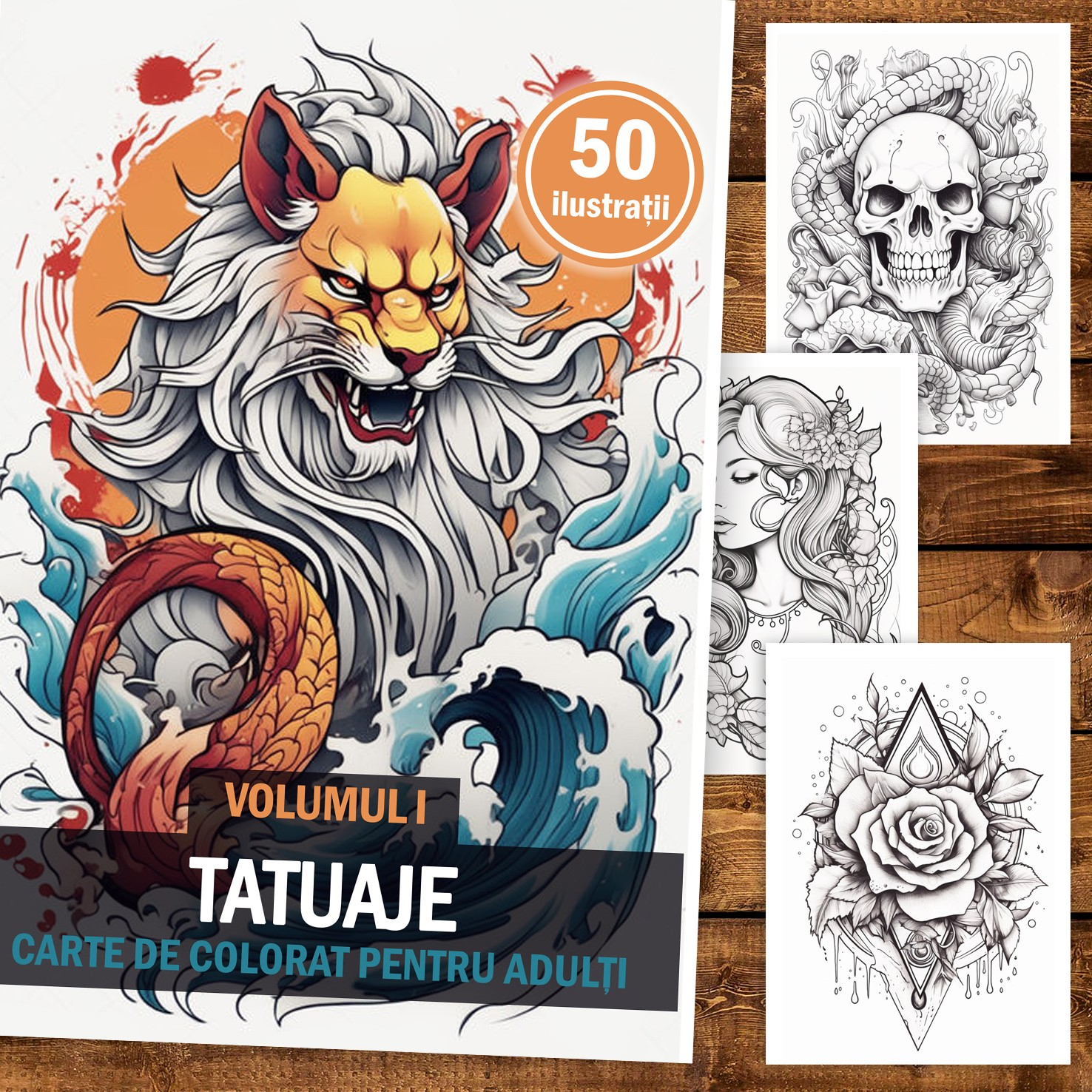 Carte de colorat pentru adulti, 50 de ilustratii, Tatuaje - Volumul I, 106 pagini