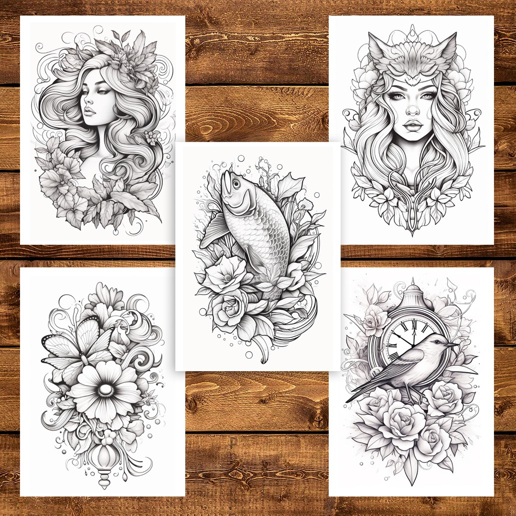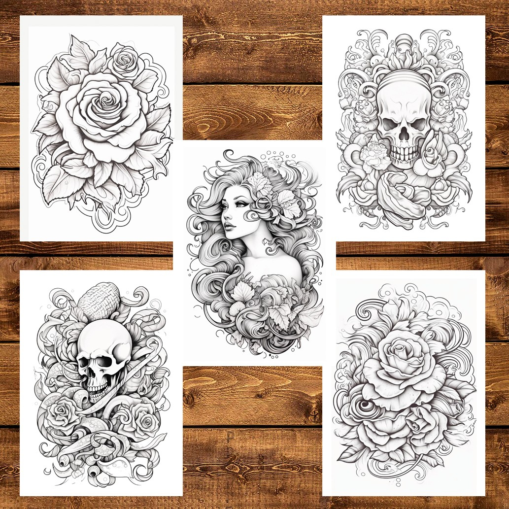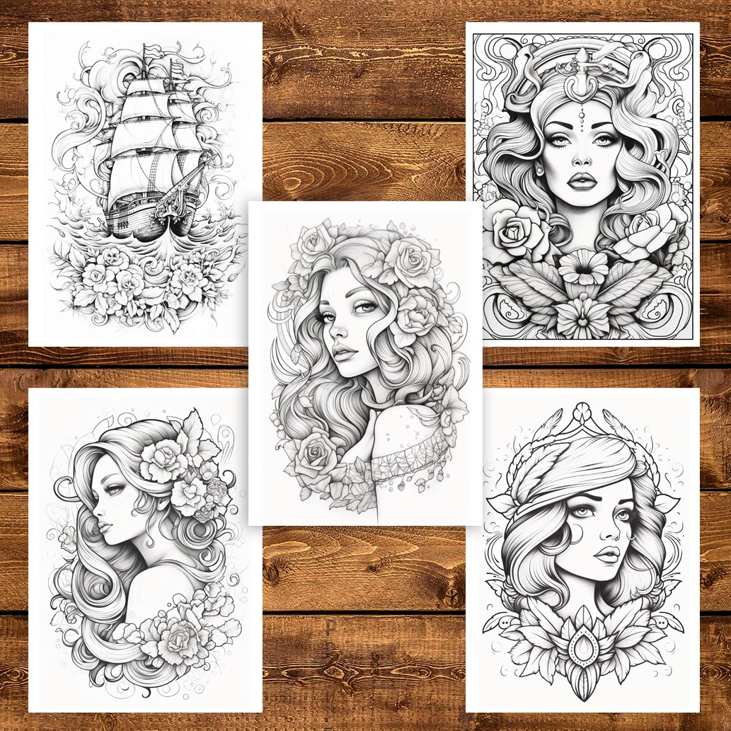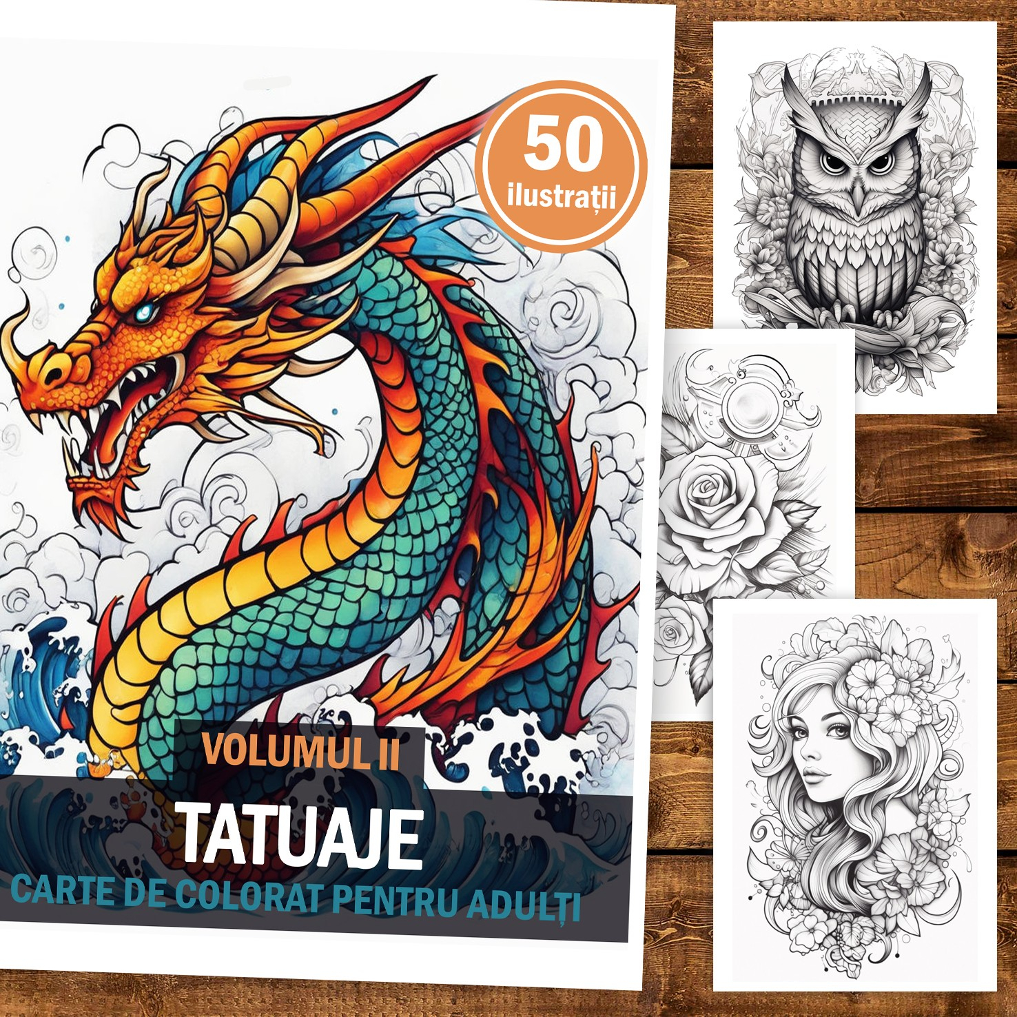Carte de colorat pentru adulti, 50 de ilustratii, Tatuaje - Volumul II, 106 pagini