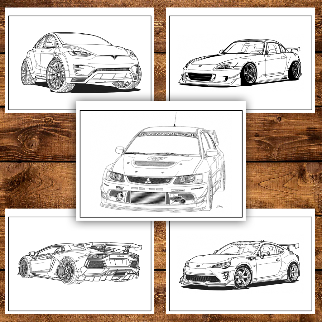 Carte de colorat pentru copii , 50 de ilustratii Masini Tunate - Volumul II, 106 pagini