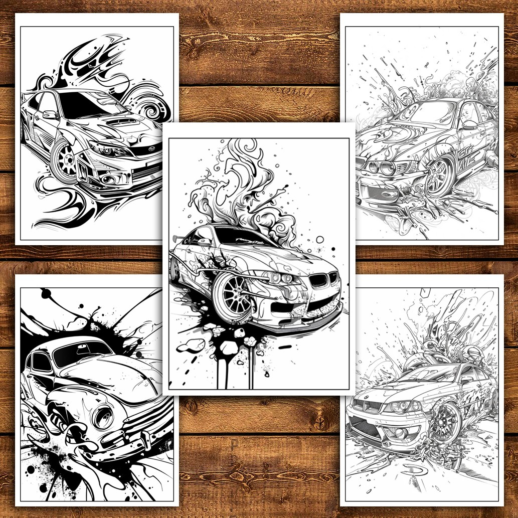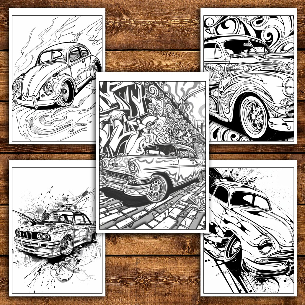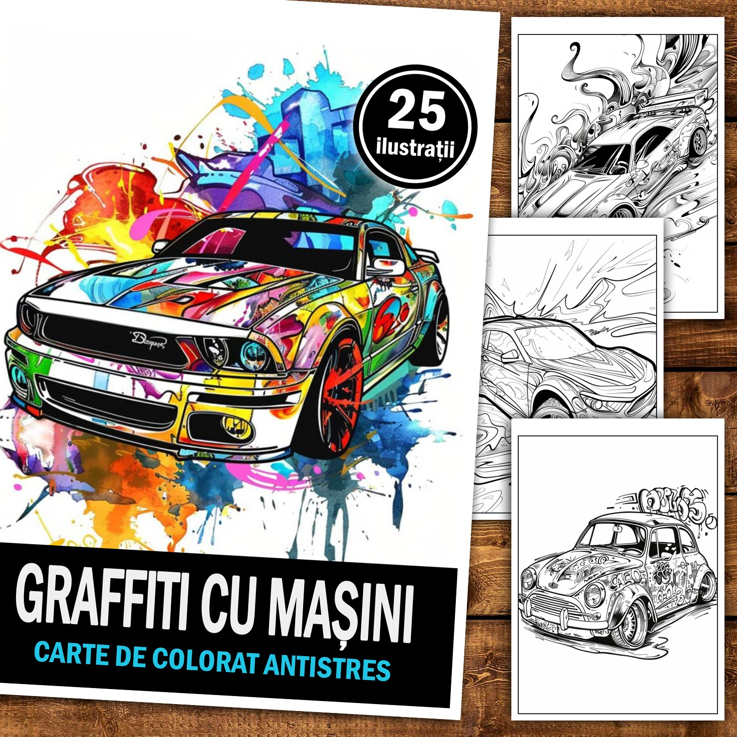 Carte de colorat pentru relaxare si antistres, 25 de ilustratii, Graffiti cu Masini, 56 pagini