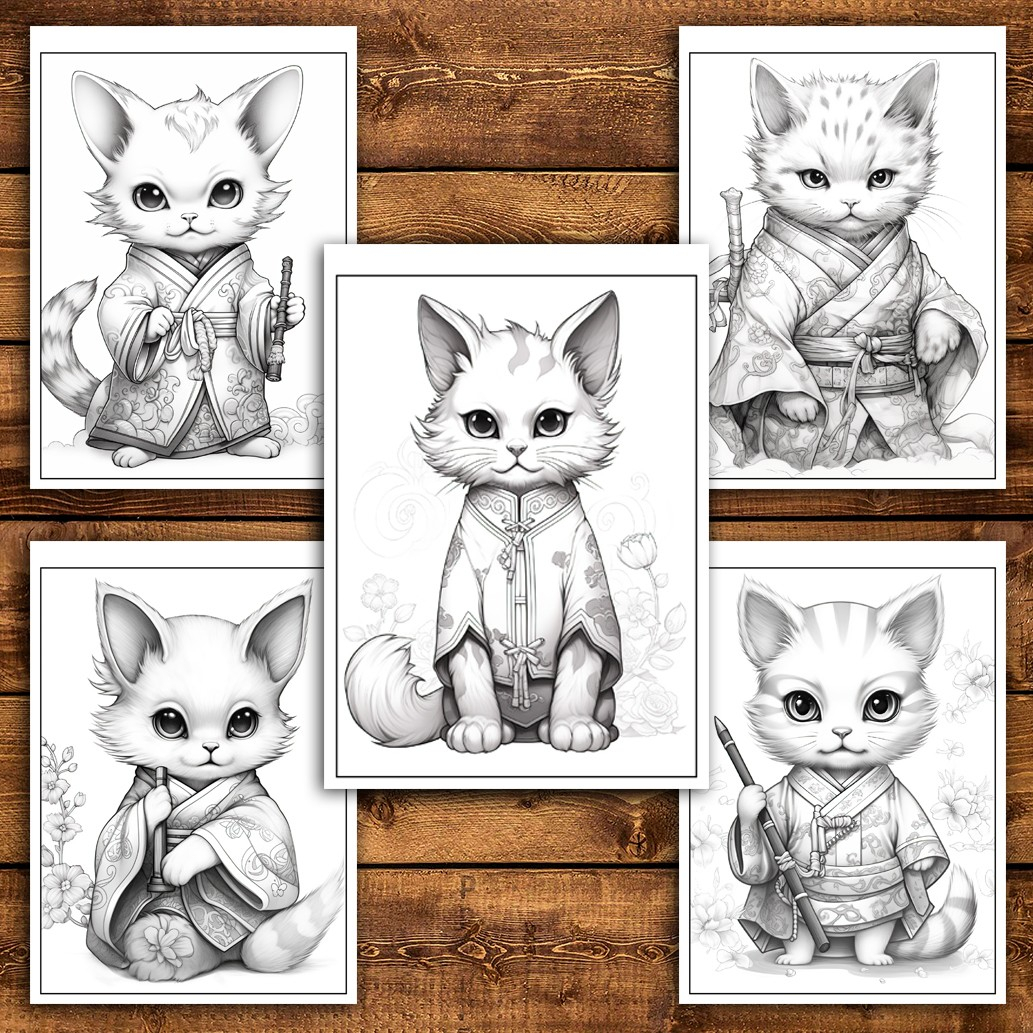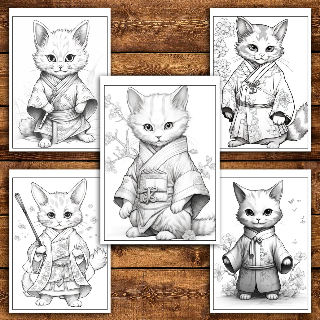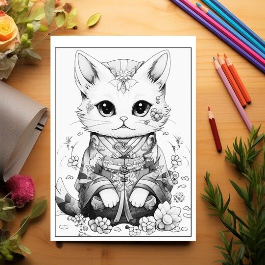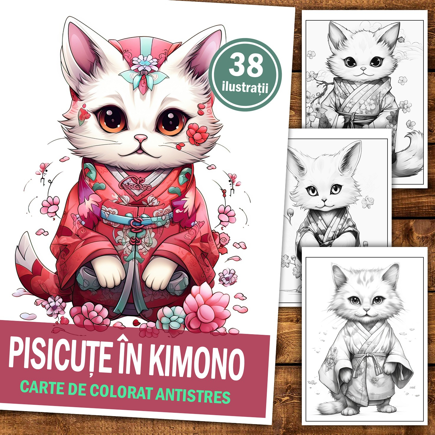 Carte de colorat pentru relaxare si antistres, 38 de ilustratii, Pisicute in Kimono, 82 pagini