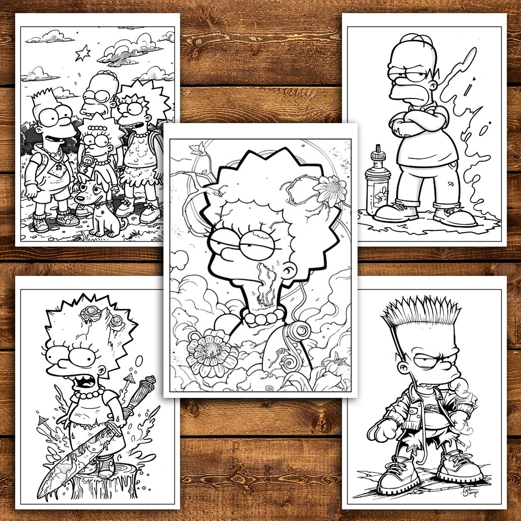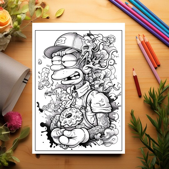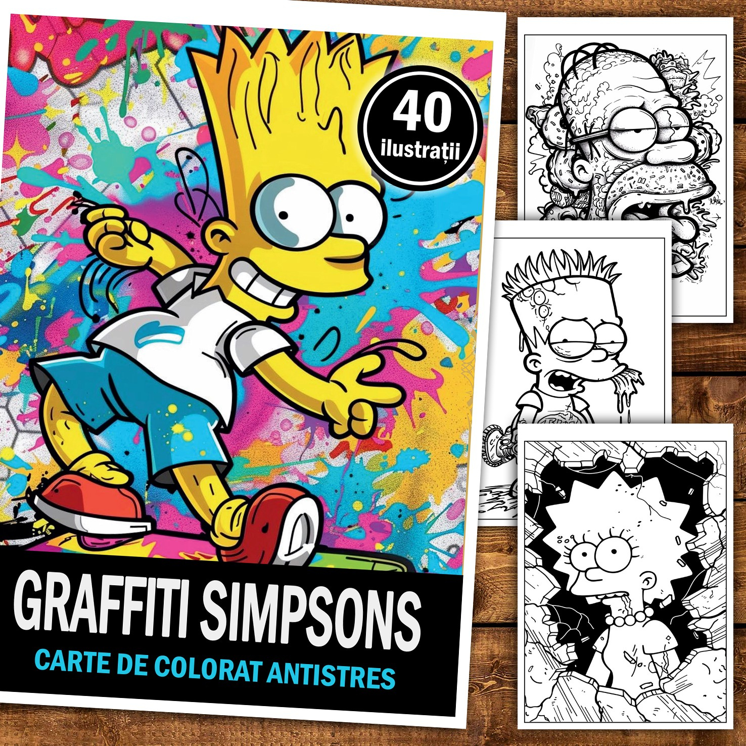 Carte de colorat pentru relaxare si antistres, 40 de ilustratii, Graffiti Simpsons, 86 pagini