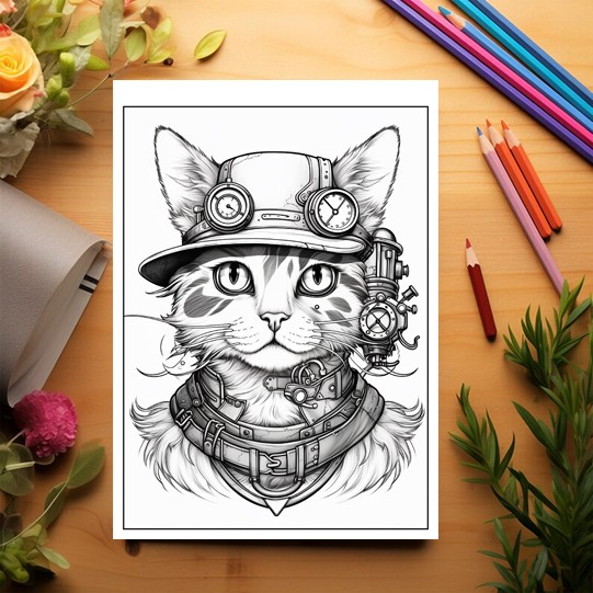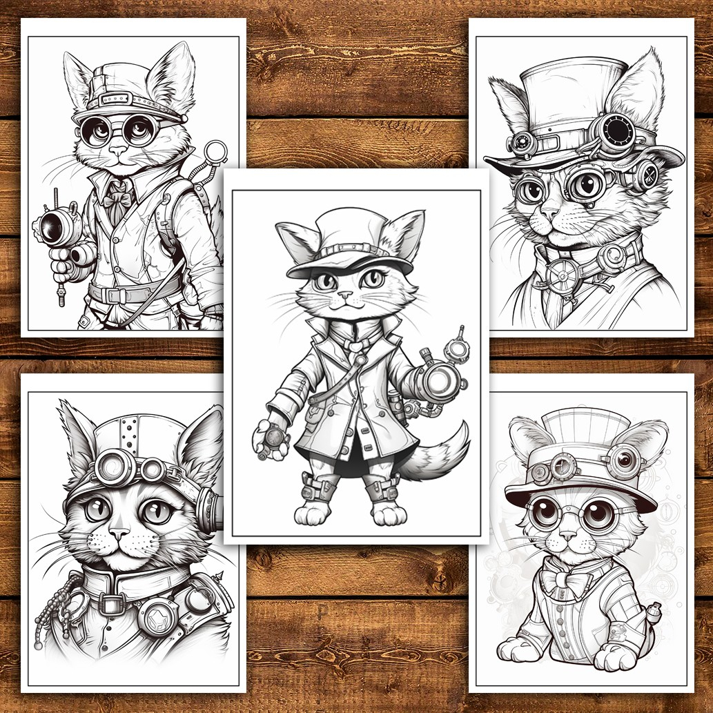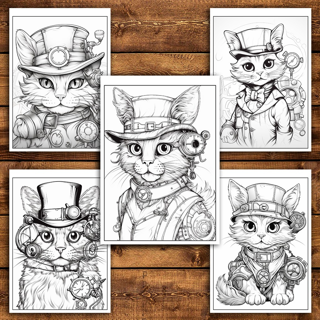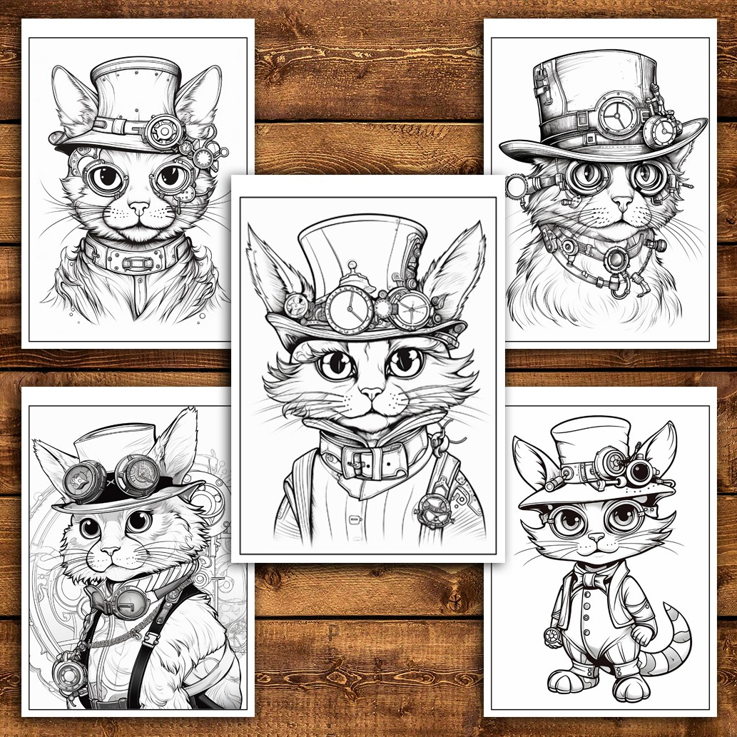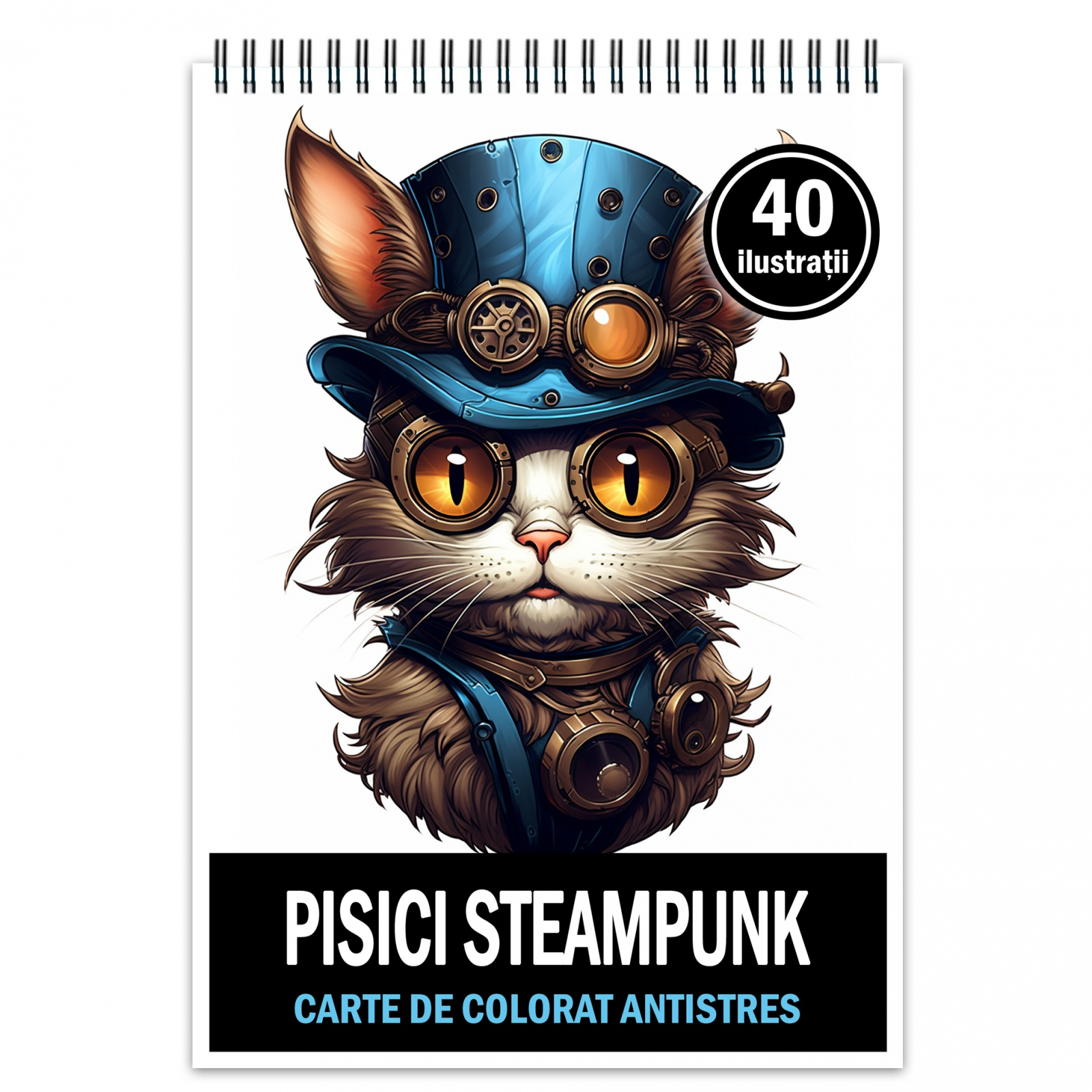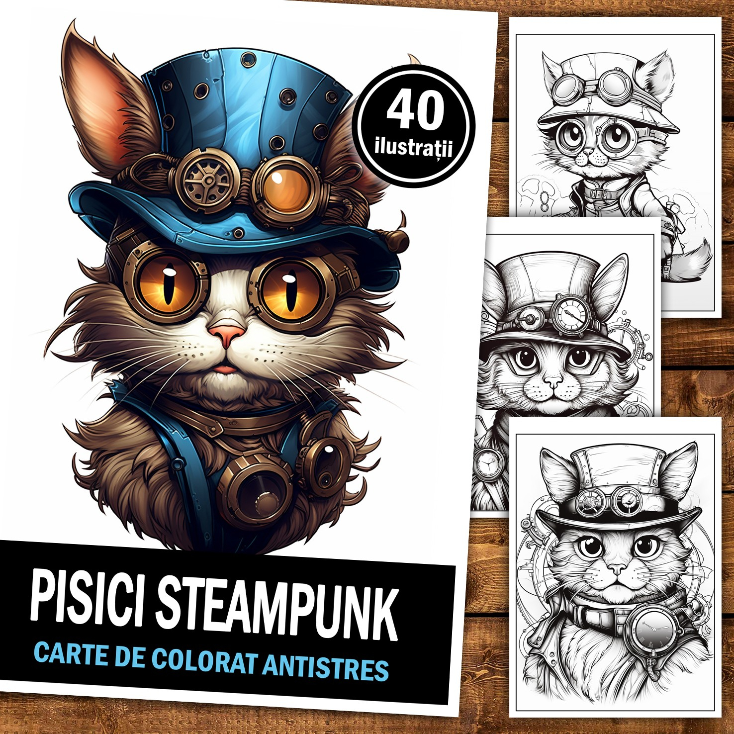 Carte de colorat pentru relaxare si antistres, 40 de ilustratii, Pisici Steampunk, 86 pagini