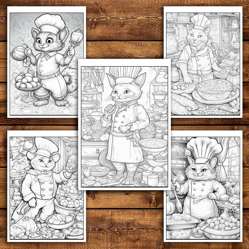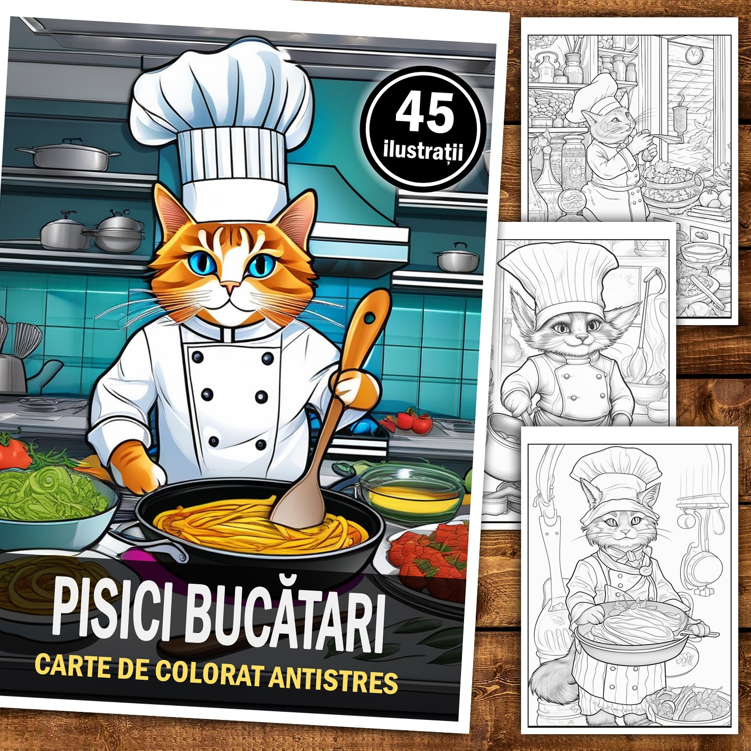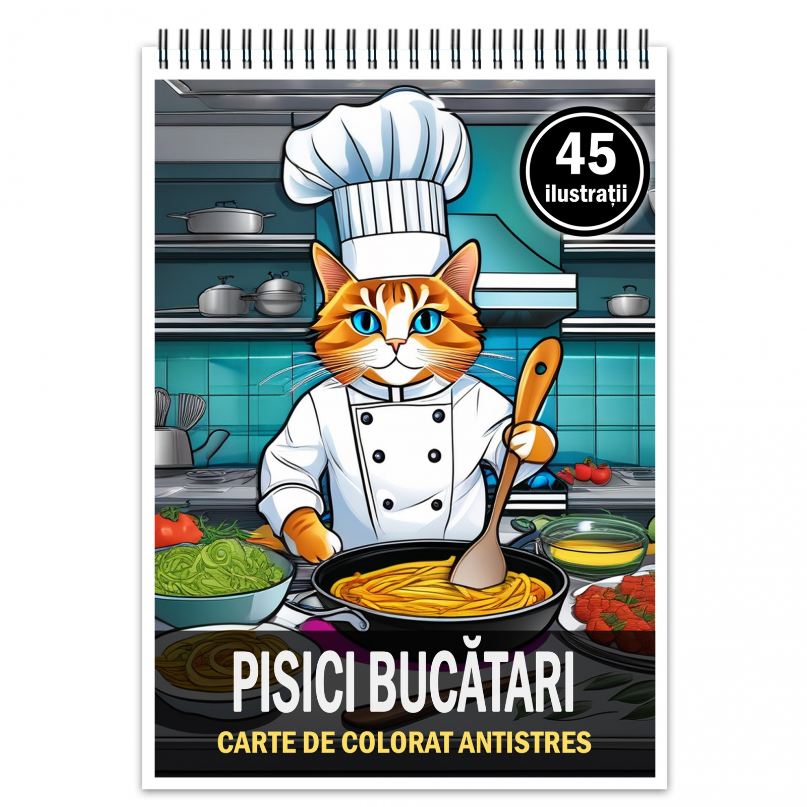 Carte de colorat pentru relaxare si antistres, 45 de ilustratii, Pisici Bucatari, 96 pagini