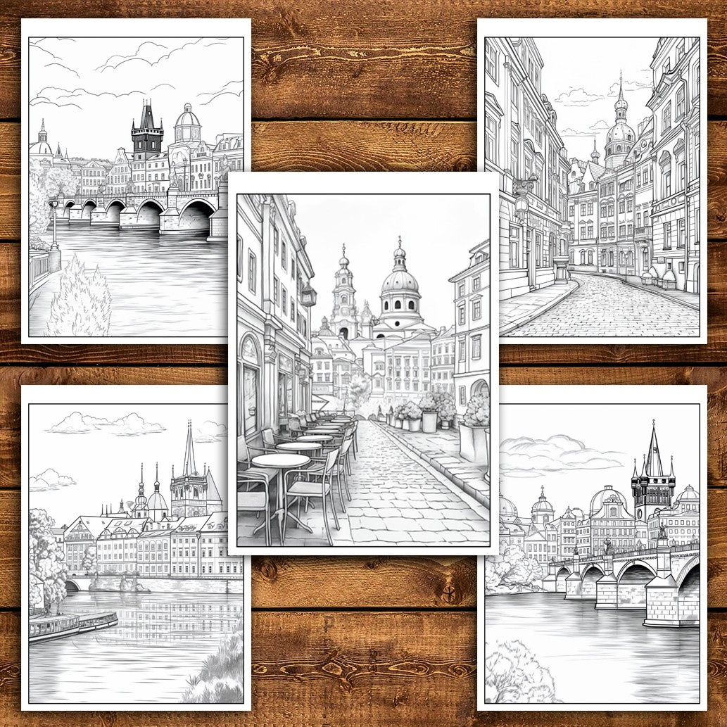 Carte de colorat pentru relaxare si antistres, 45 de ilustratii, Praga, 96 pagini