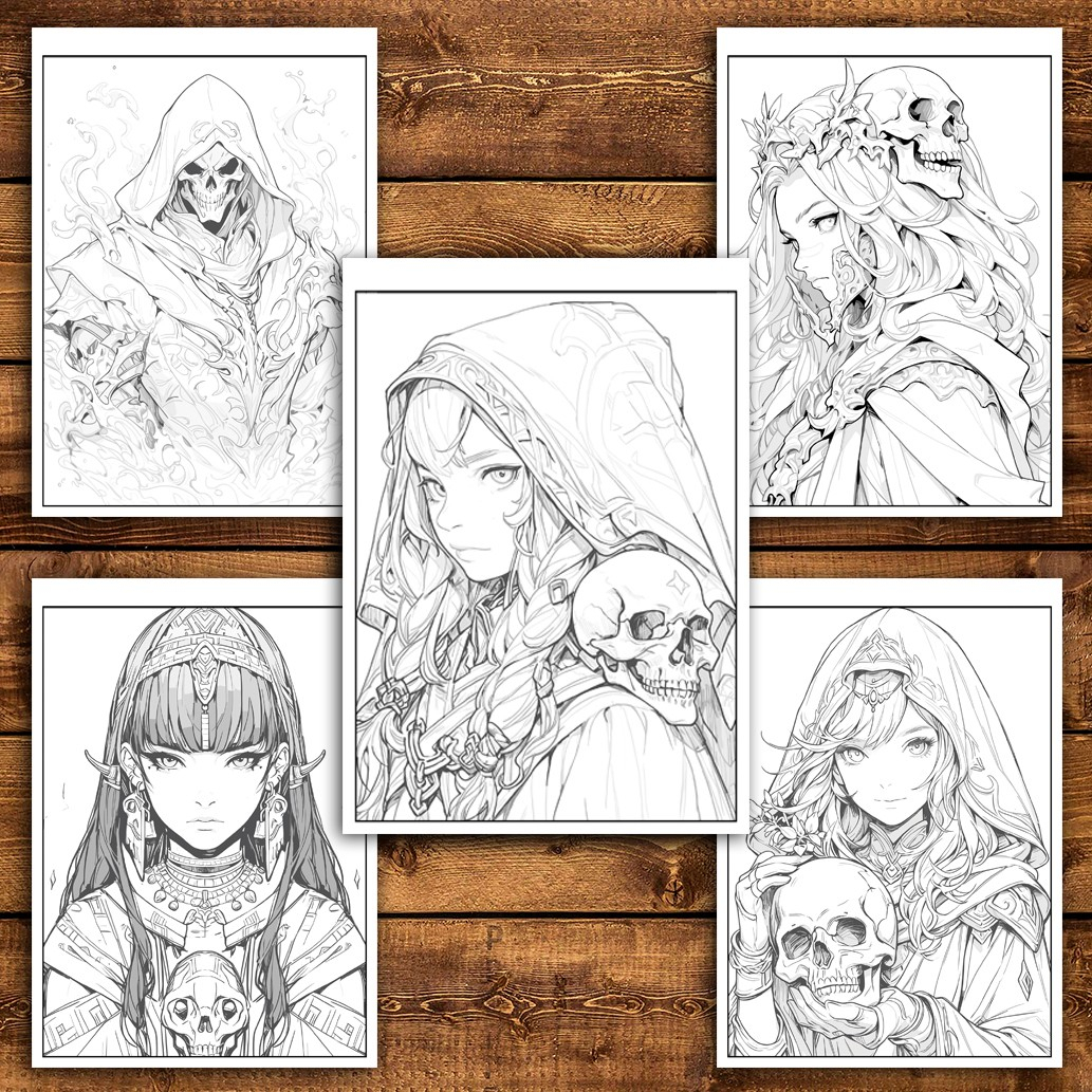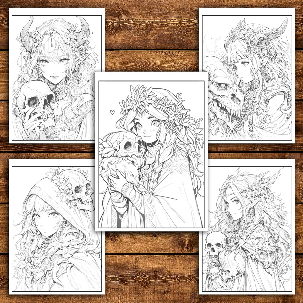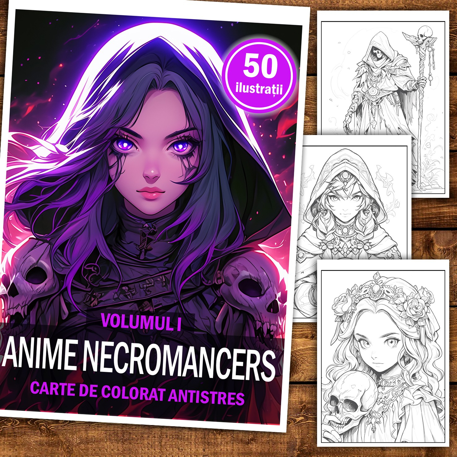 Carte de colorat pentru relaxare si antistres, 50 de ilustratii, Anime Necromancers, 106 pagini