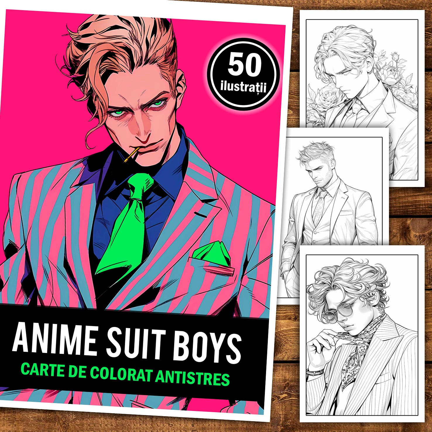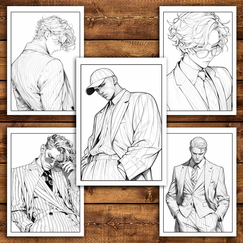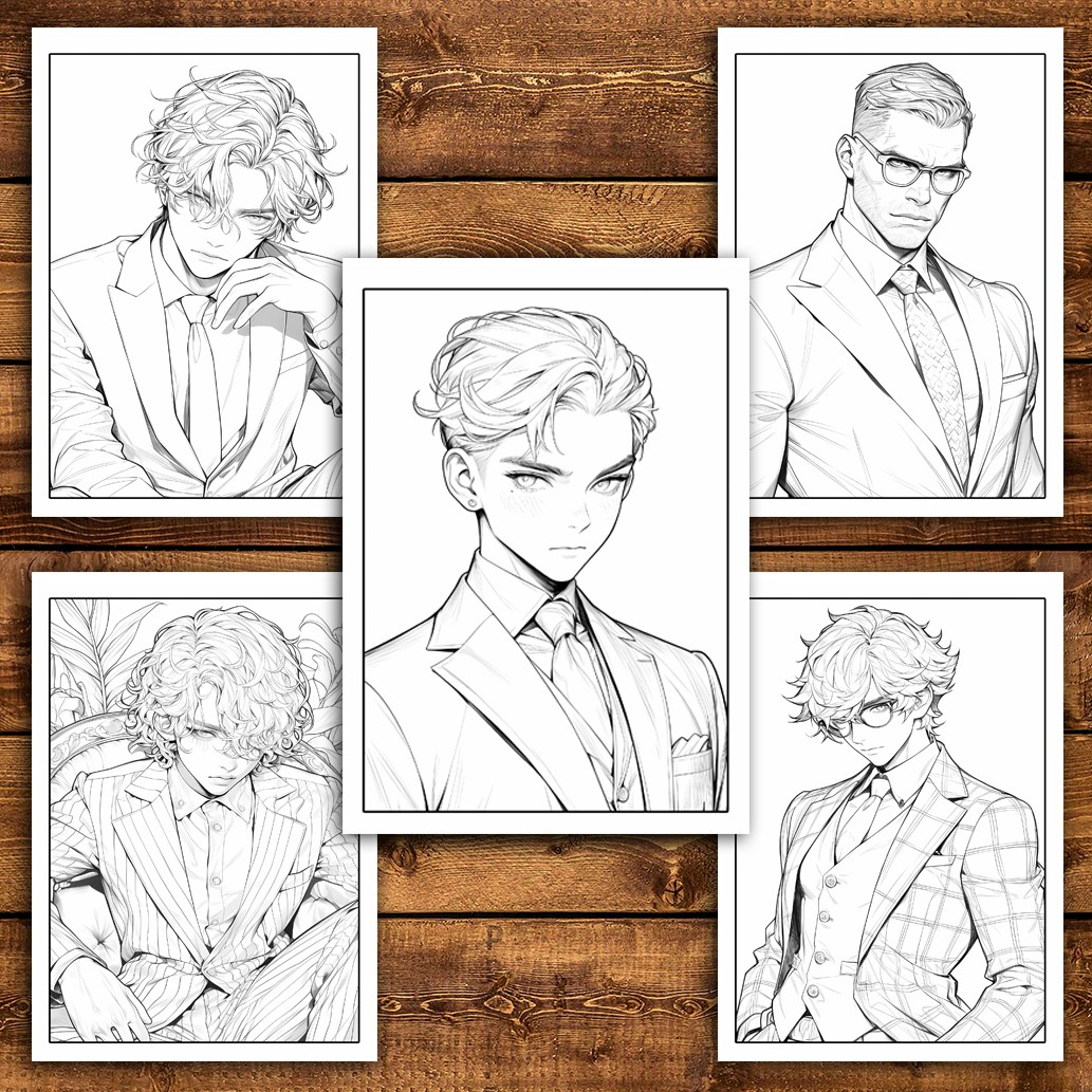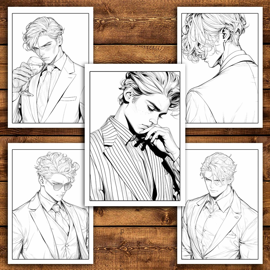Carte de colorat pentru relaxare si antistres, 50 de ilustratii, Anime Suit Boys, 106 pagini