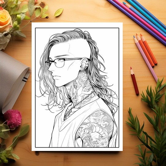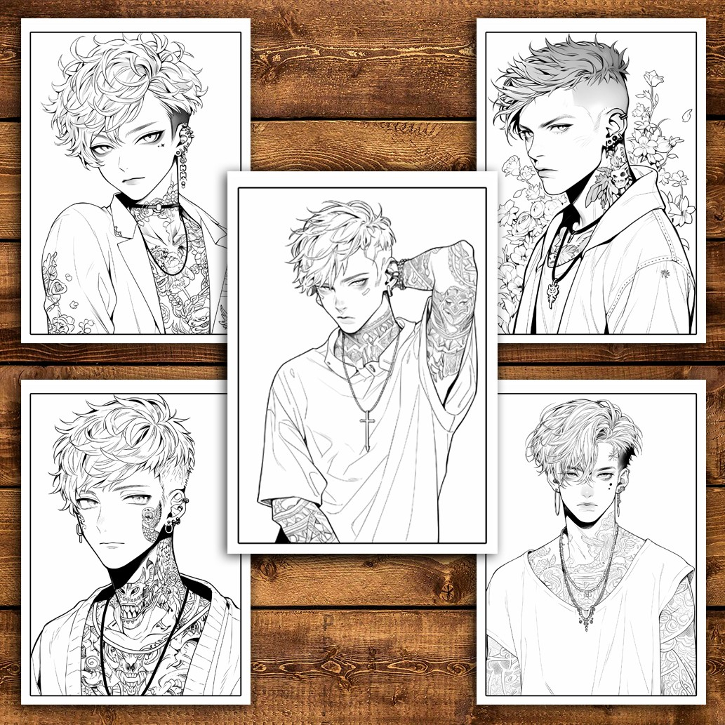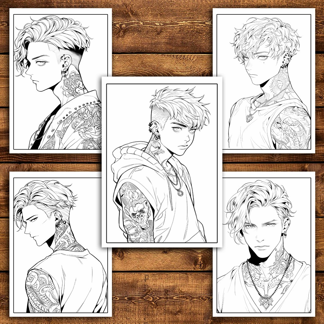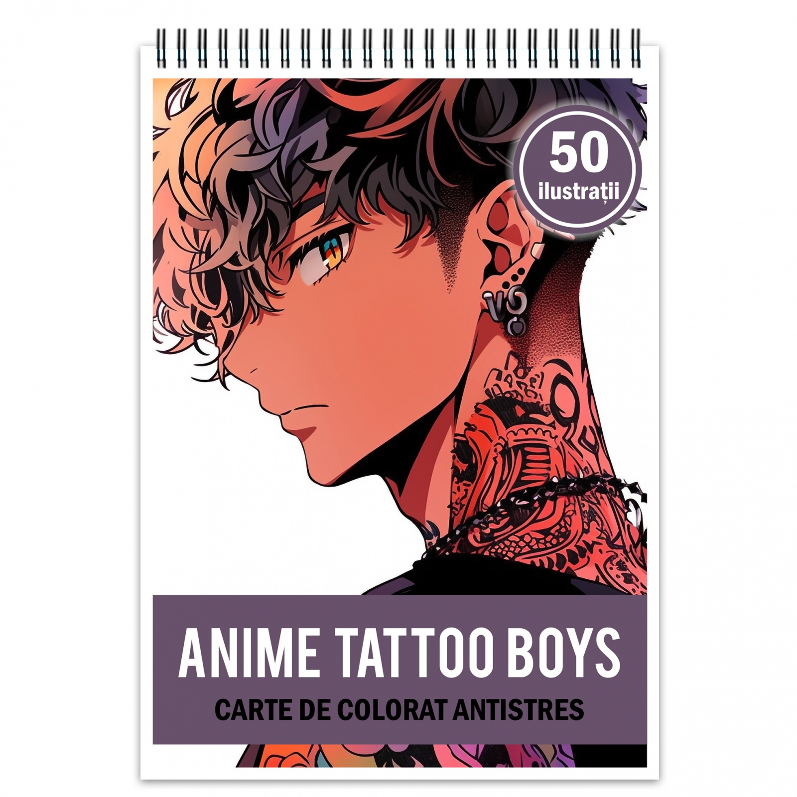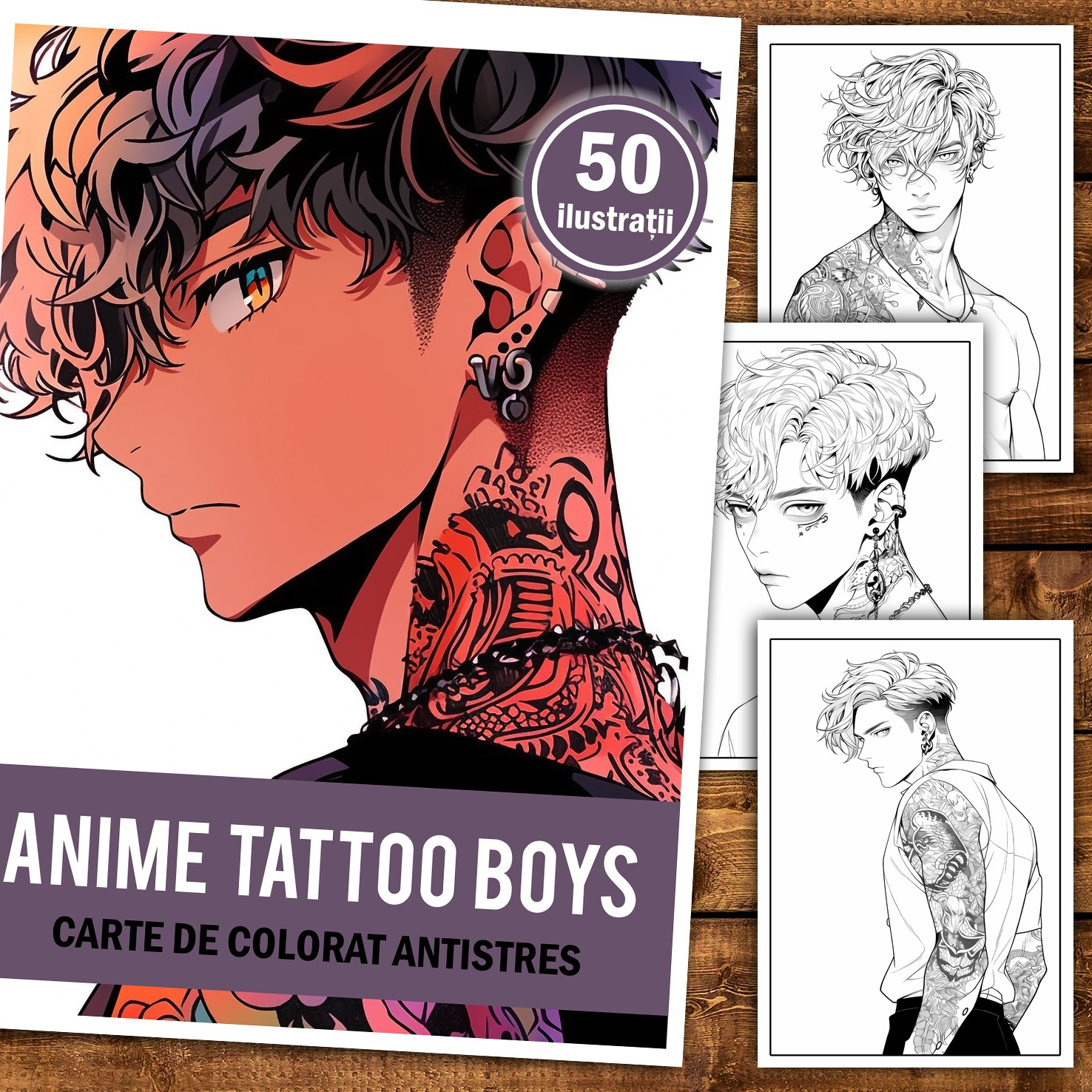Carte de colorat pentru relaxare si antistres, 50 de ilustratii, Anime Tatoo Boys, 106 pagini